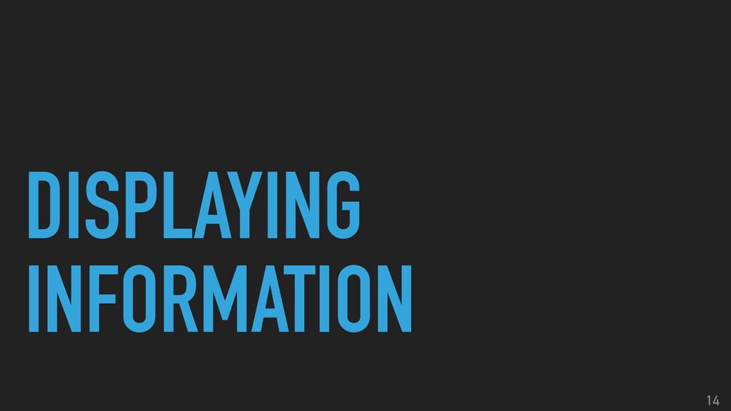 5. DISPLAYING INFORMATION 15 •LARGE WALLS OF TEXT •SMALL FONTS •OVERUSE
