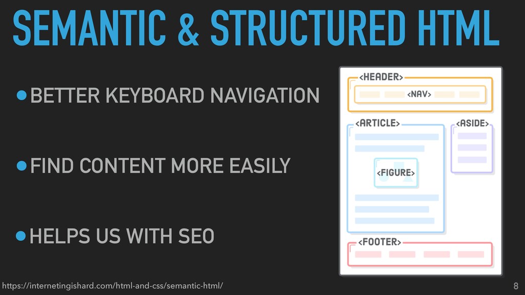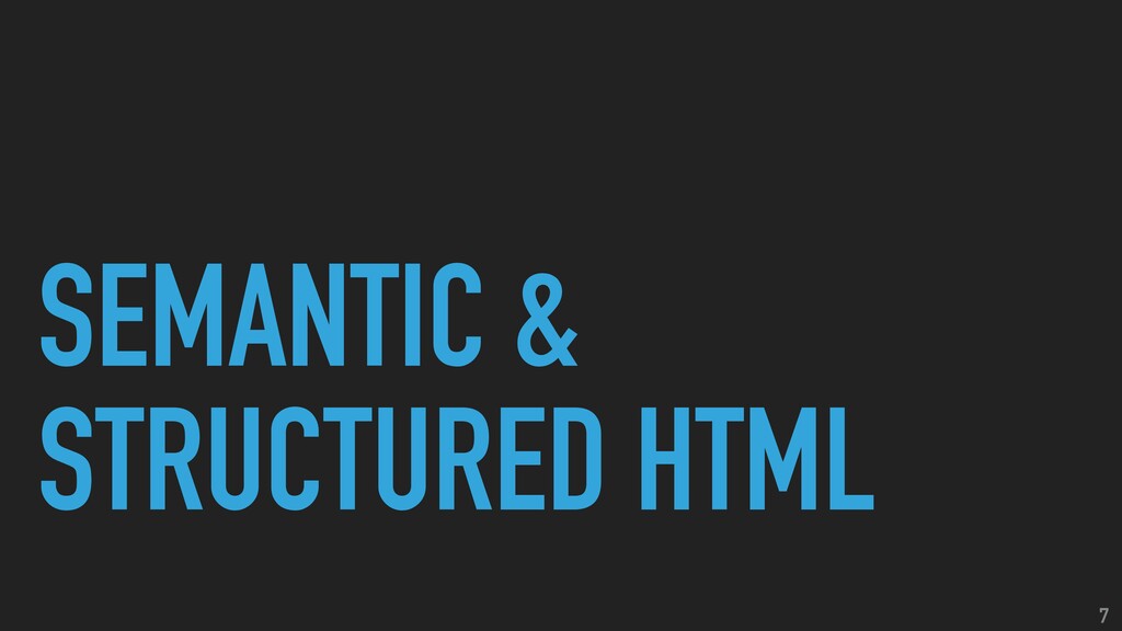 2. COMMON ACCESSIBILITY PRACTICES 6 •SEMANTIC & STRUCTURED HTML •COLOR &
