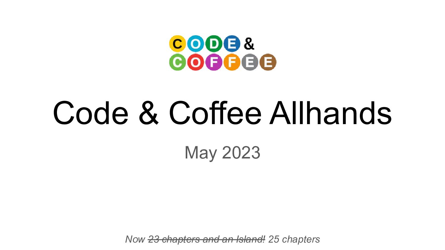 Code & Coffee Allhands May 2023 Now 23 chapters and