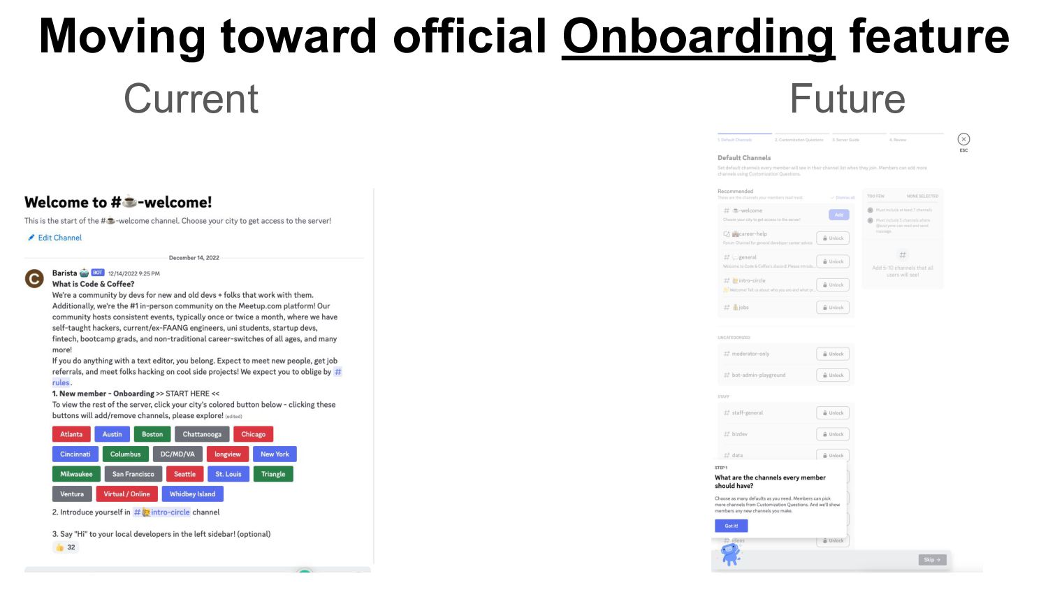 Current Moving toward official Onboarding feature Future