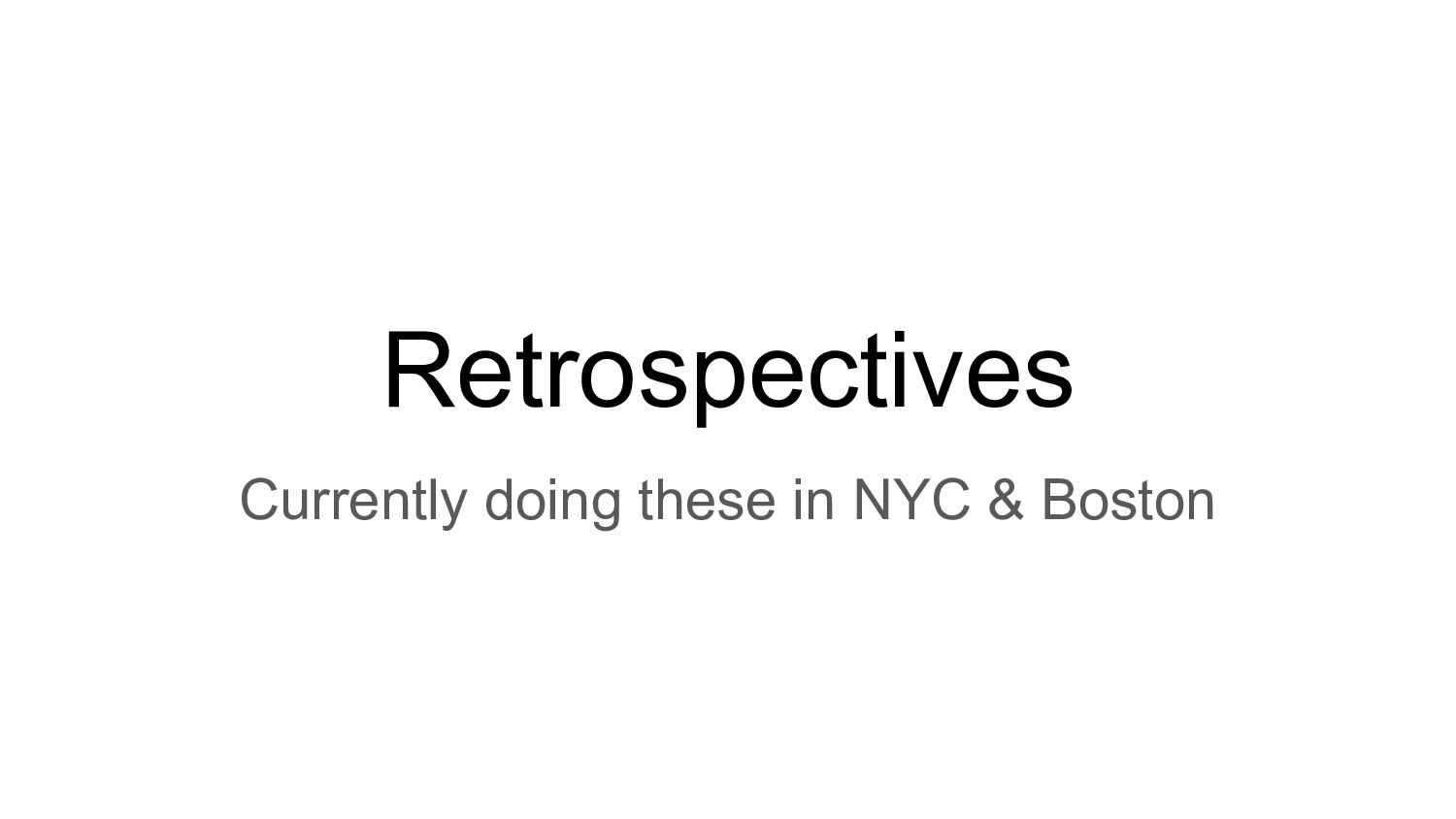 Retrospectives Currently doing these in NYC & Boston