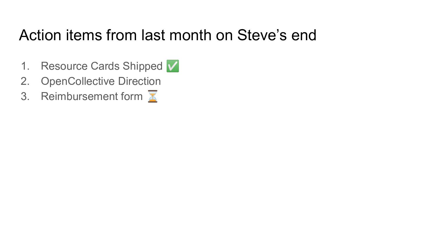 Action items from last month on Steve’s end 1. Resource