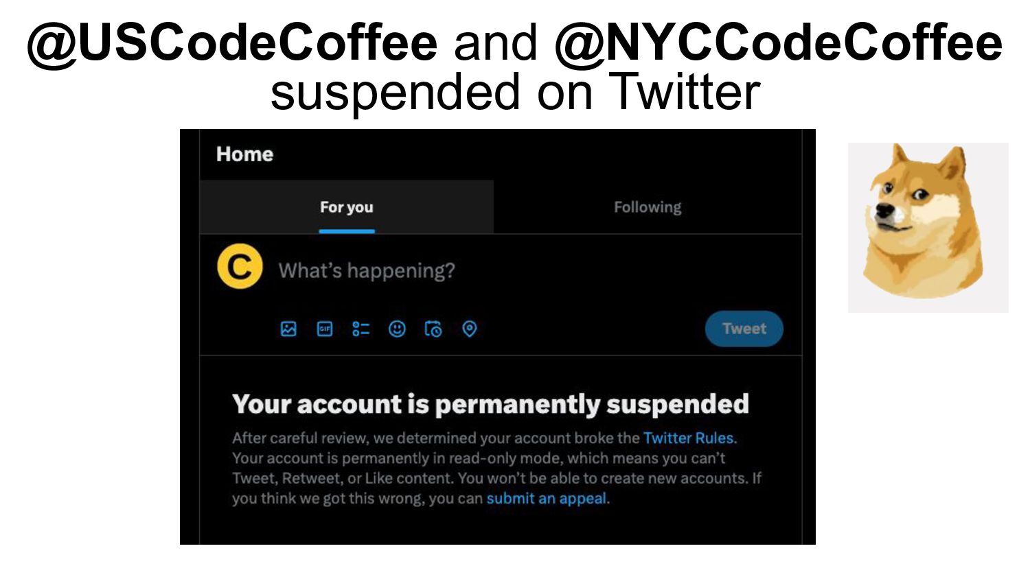 @USCodeCoffee and @NYCCodeCoffee suspended on Twitter