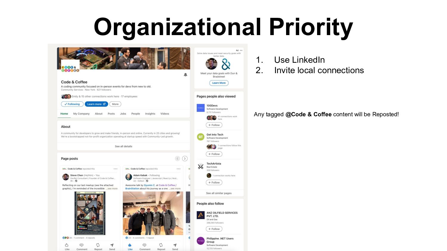 Organizational Priority Any tagged @Code & Coffee content will be