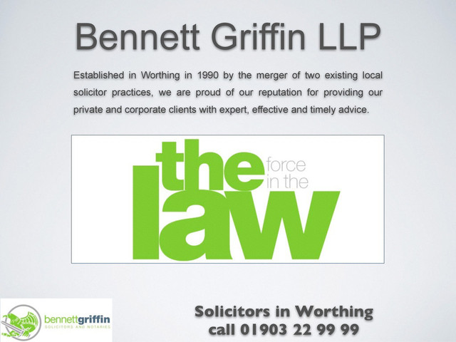 Worthing in 1990 by the merger of two existing local solicitor practices, we are proud of our reputation for providing our private and corporate clients with expert, effective and timely advice. Bennett Griffin LLP