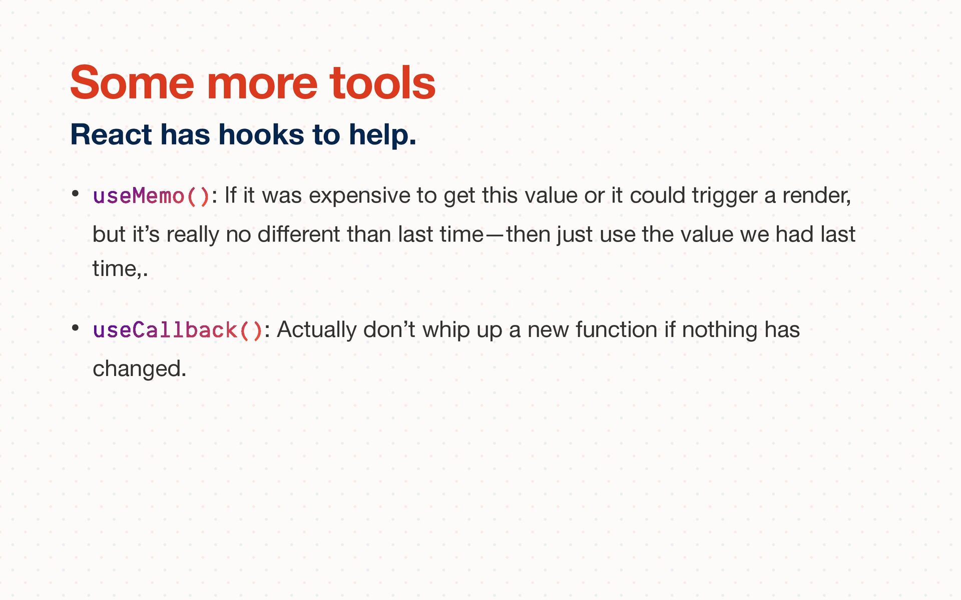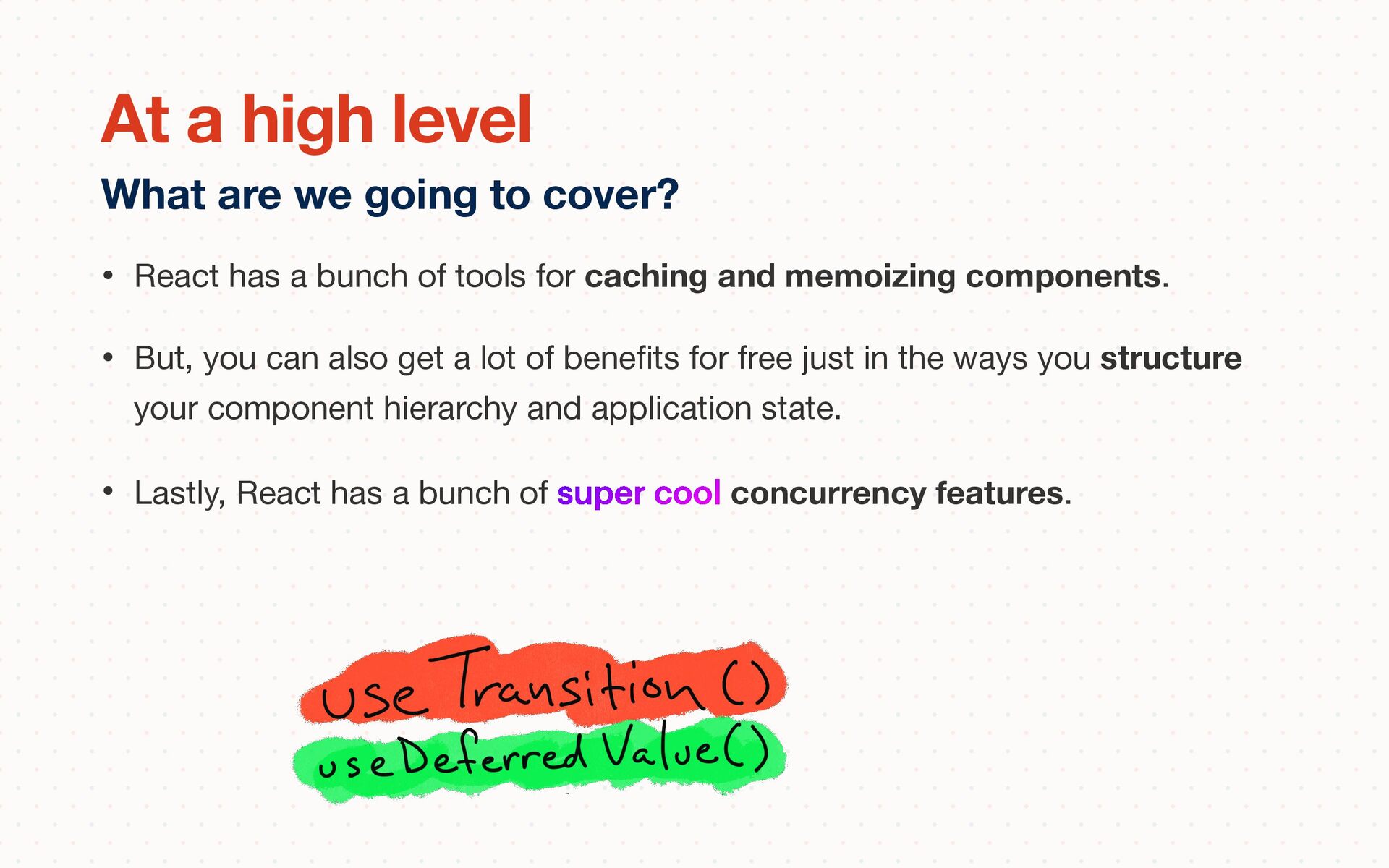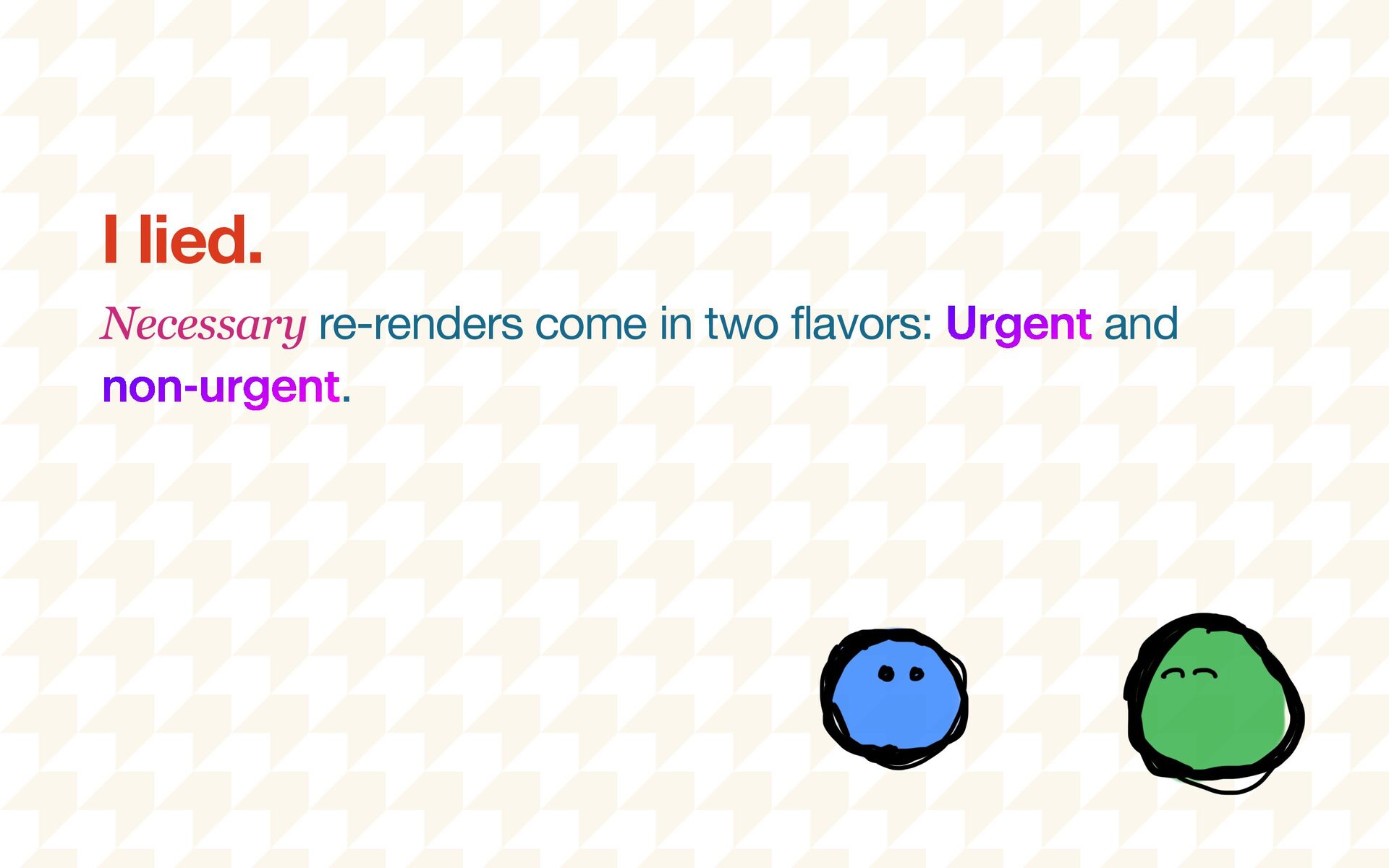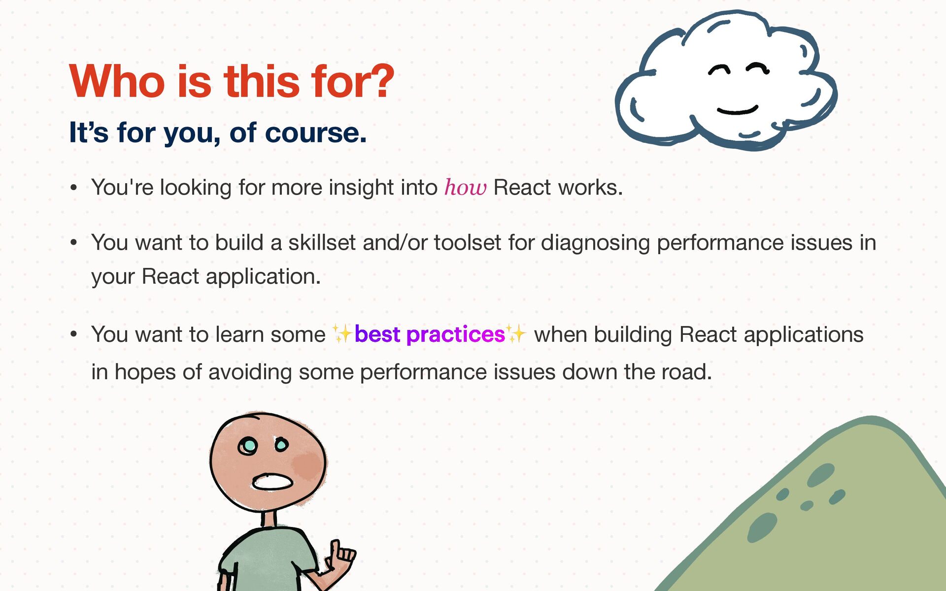 call the component function, derive the children. • If there are children, descend. If not, bubble up via completeWork to fi nalize the node, update the DOM, and collect any e ff ects. • But, along the way—ask Should I yield? If yes, pause for a moment and let the browser have the wheel back for a second. • Pick up where you left o ff . One thing at a time. The Rendering Phase