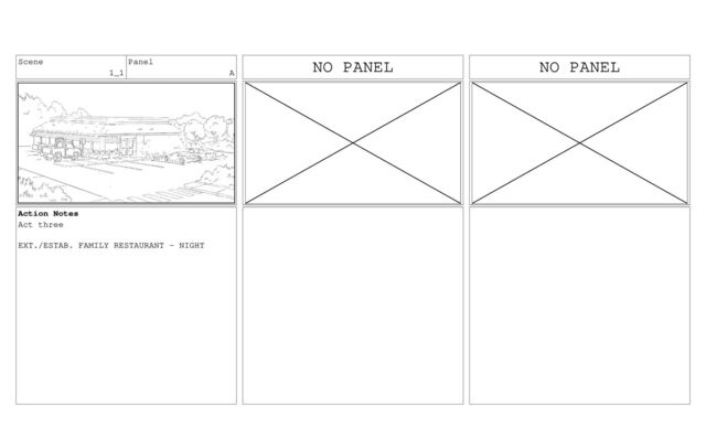 P.A. SYSTEM) Attention, passengers, for the next twenty minutes, the Captain would like to offer an open bar at the front of the ship... Action Notes EXT. OCEAN - DAY (CUTAWAY) We see a WIDE SHOT of a cruise ship, floating on the water. Scene 27 Panel B Action Notes We hear a great deal of clatter as the passengers stampede toward the front of the ship. The ship tilts sharply forward so that the stern is sticking up in the air. Scene 27 Panel C Dialogue 313 CRUISE DIRECTOR (V.O., OVER P.A. SYSTEM) ...All we ask is a small gratuity for the bar staff. Action Notes We hear the same clatter as the ship rights itself.