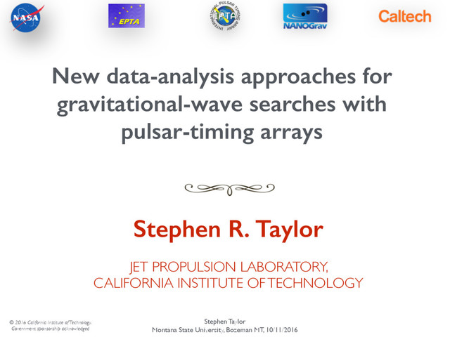 California Institute of Technology. Government sponsorship acknowledged Stephen R. Taylor New data-analysis approaches for gravitational-wave searches with pulsar-timing arrays JET PROPULSION LABORATORY, CALIFORNIA INSTITUTE OF TECHNOLOGY