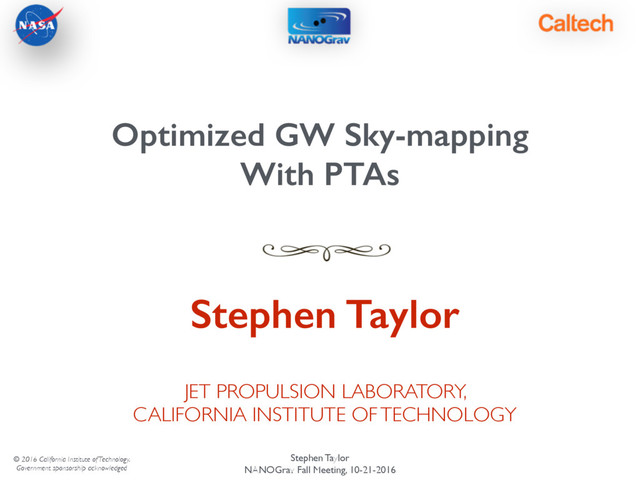 of Technology. Government sponsorship acknowledged Stephen Taylor Optimized GW Sky-mapping With PTAs JET PROPULSION LABORATORY, CALIFORNIA INSTITUTE OF TECHNOLOGY