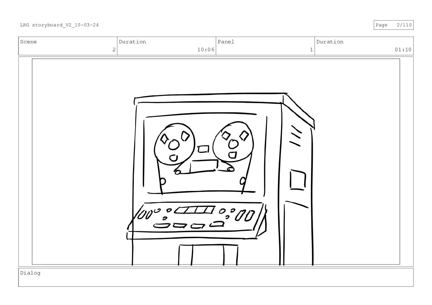 Scene 2 Duration 10:06 Panel 1 Duration 01:10 Dialog LRG