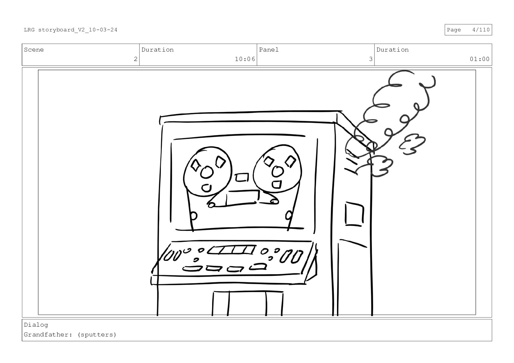 Scene 2 Duration 10:06 Panel 3 Duration 01:00 Dialog Grandfather: