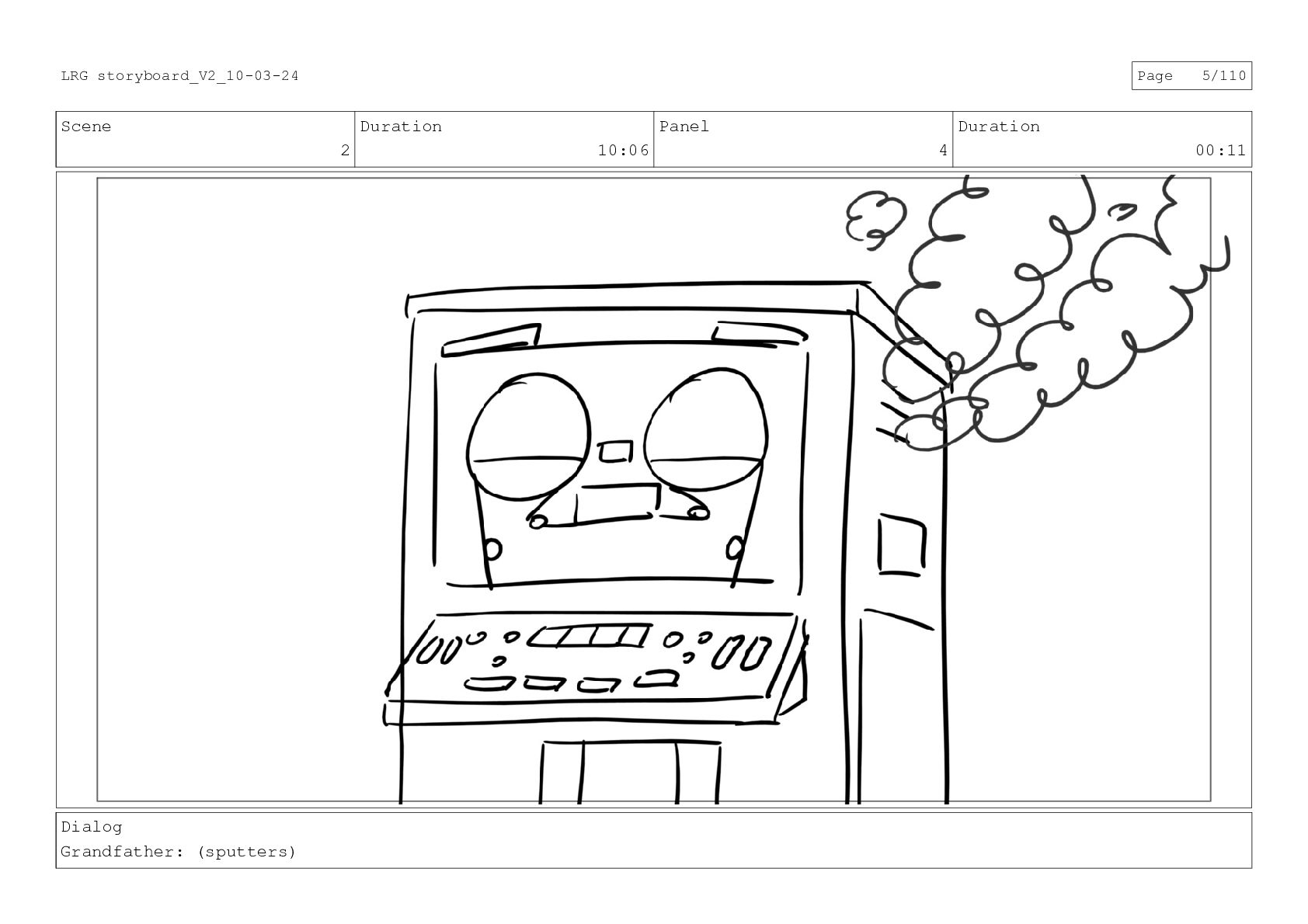 Scene 2 Duration 10:06 Panel 5 Duration 01:00 Dialog Grandfather: