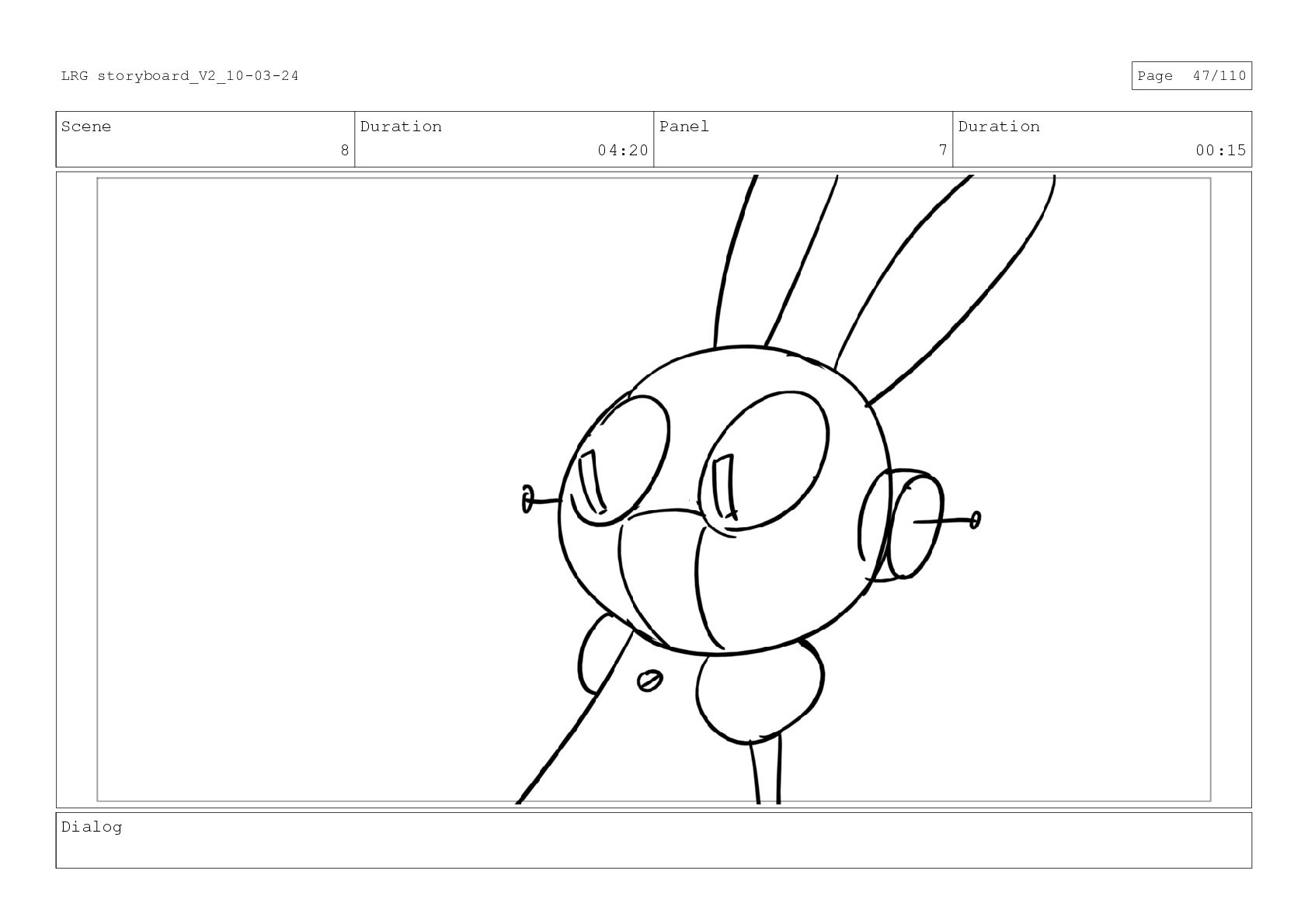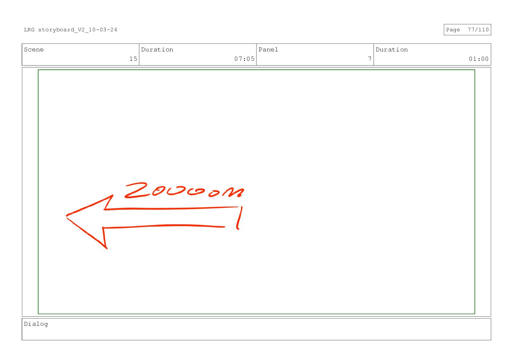 Scene 15 Duration 07:05 Panel 7 Duration 01:00 Dialog LRG