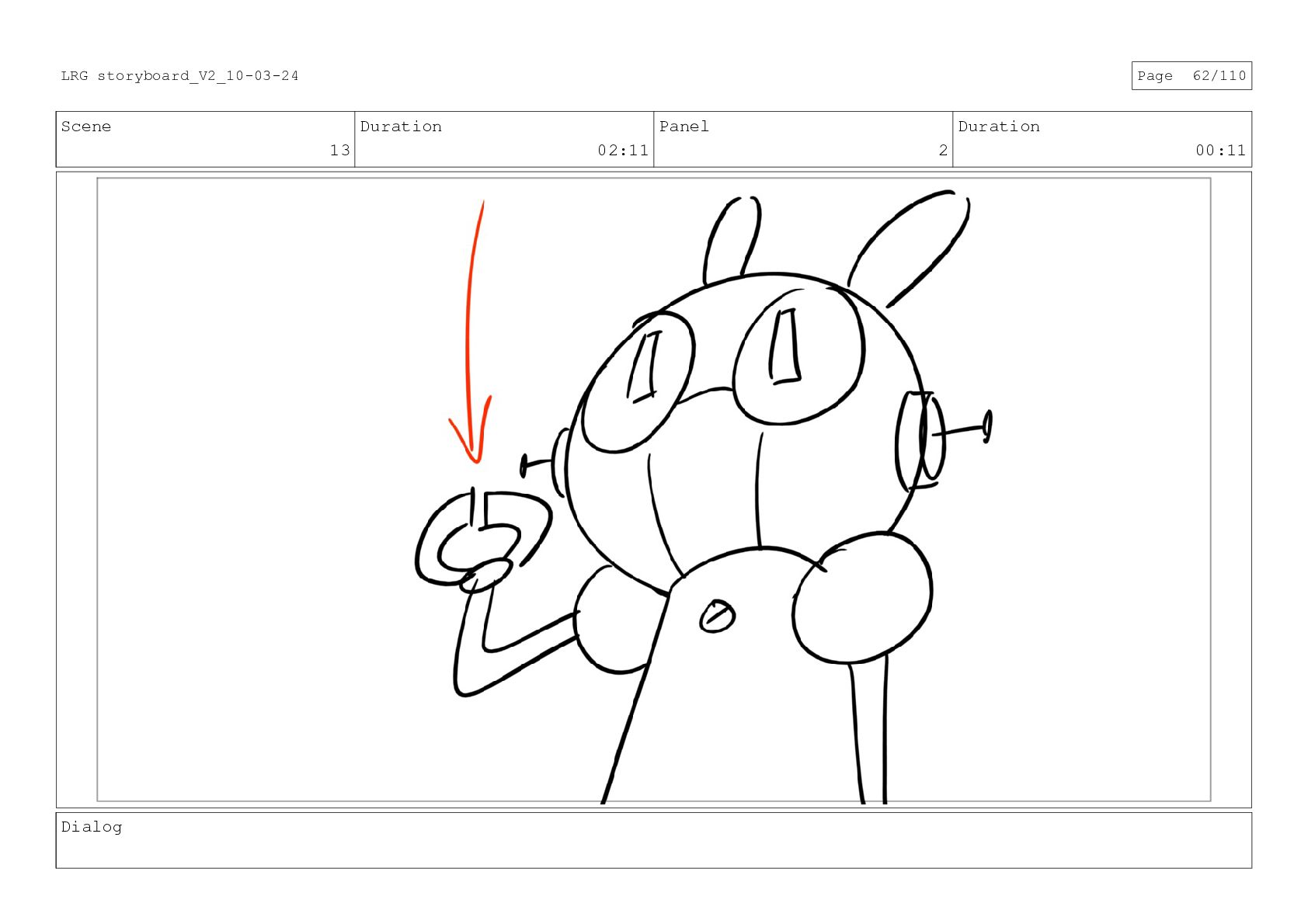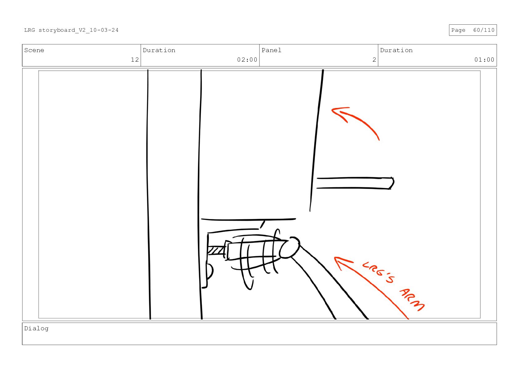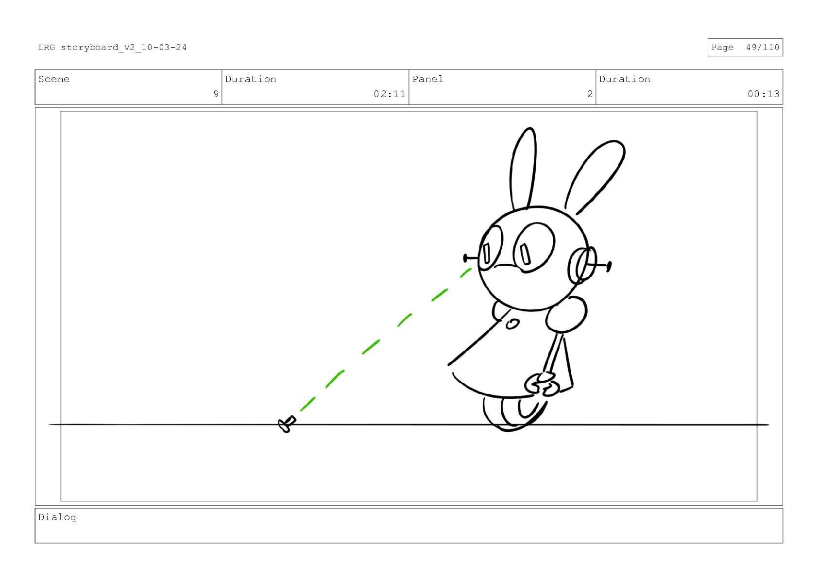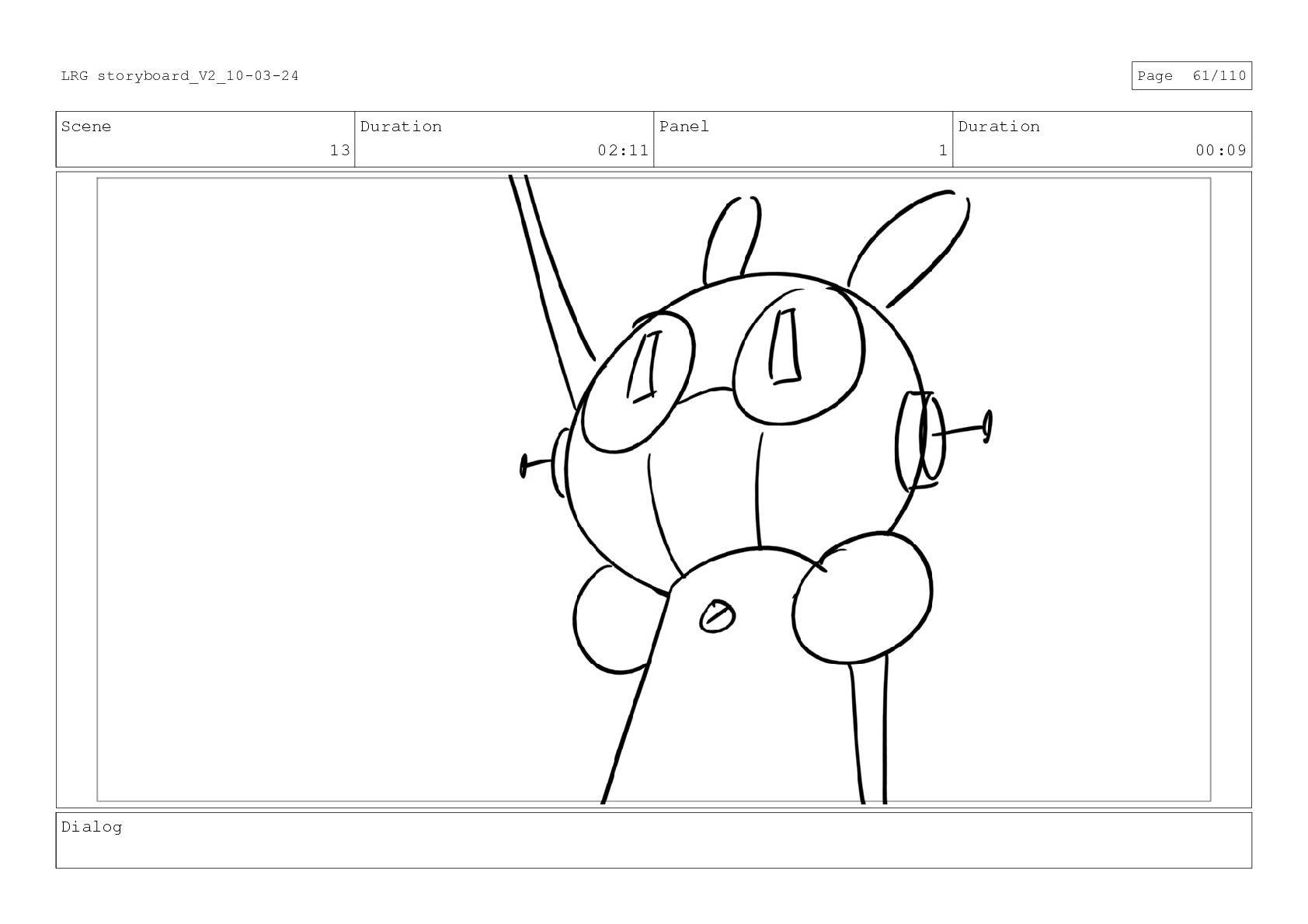 Scene 13 Duration 02:11 Panel 1 Duration 00:09 Dialog LRG