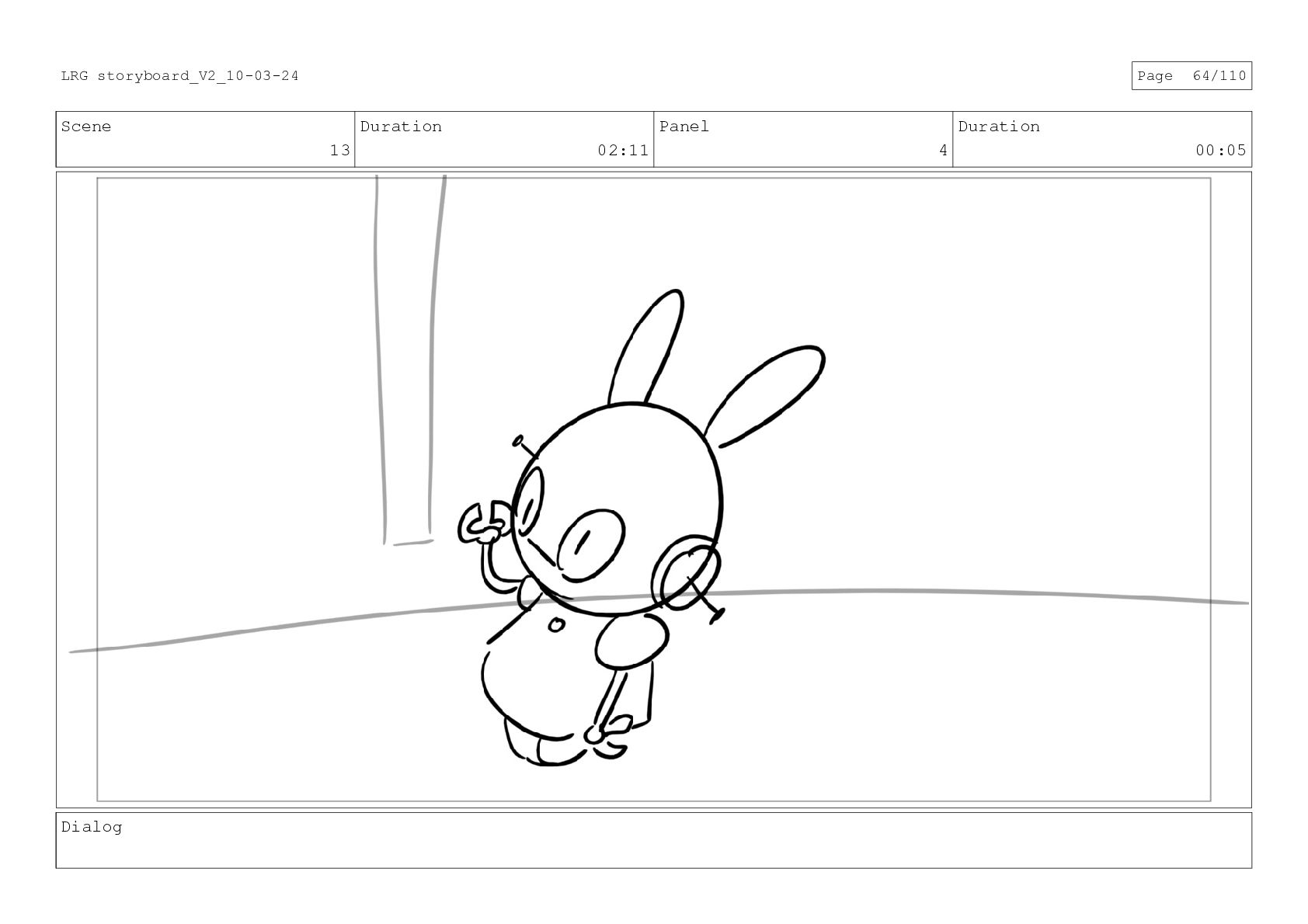Scene 13 Duration 02:11 Panel 4 Duration 00:05 Dialog LRG