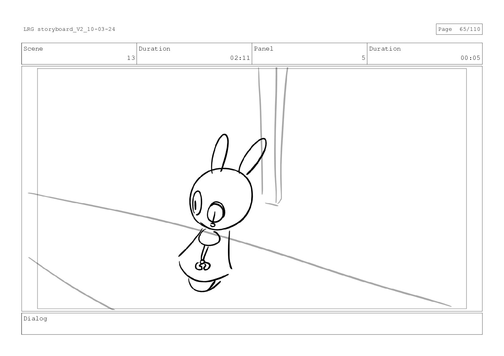 Scene 13 Duration 02:11 Panel 5 Duration 00:05 Dialog LRG