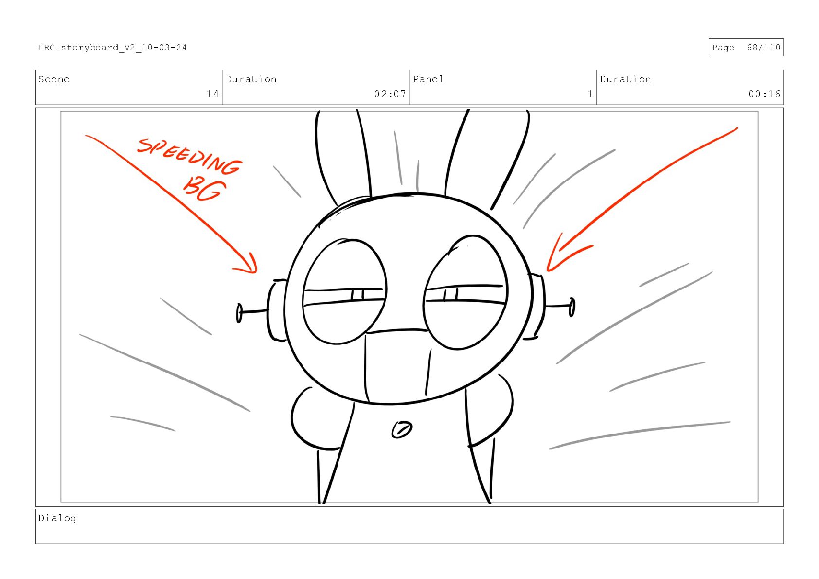 Scene 14 Duration 02:07 Panel 1 Duration 00:16 Dialog LRG