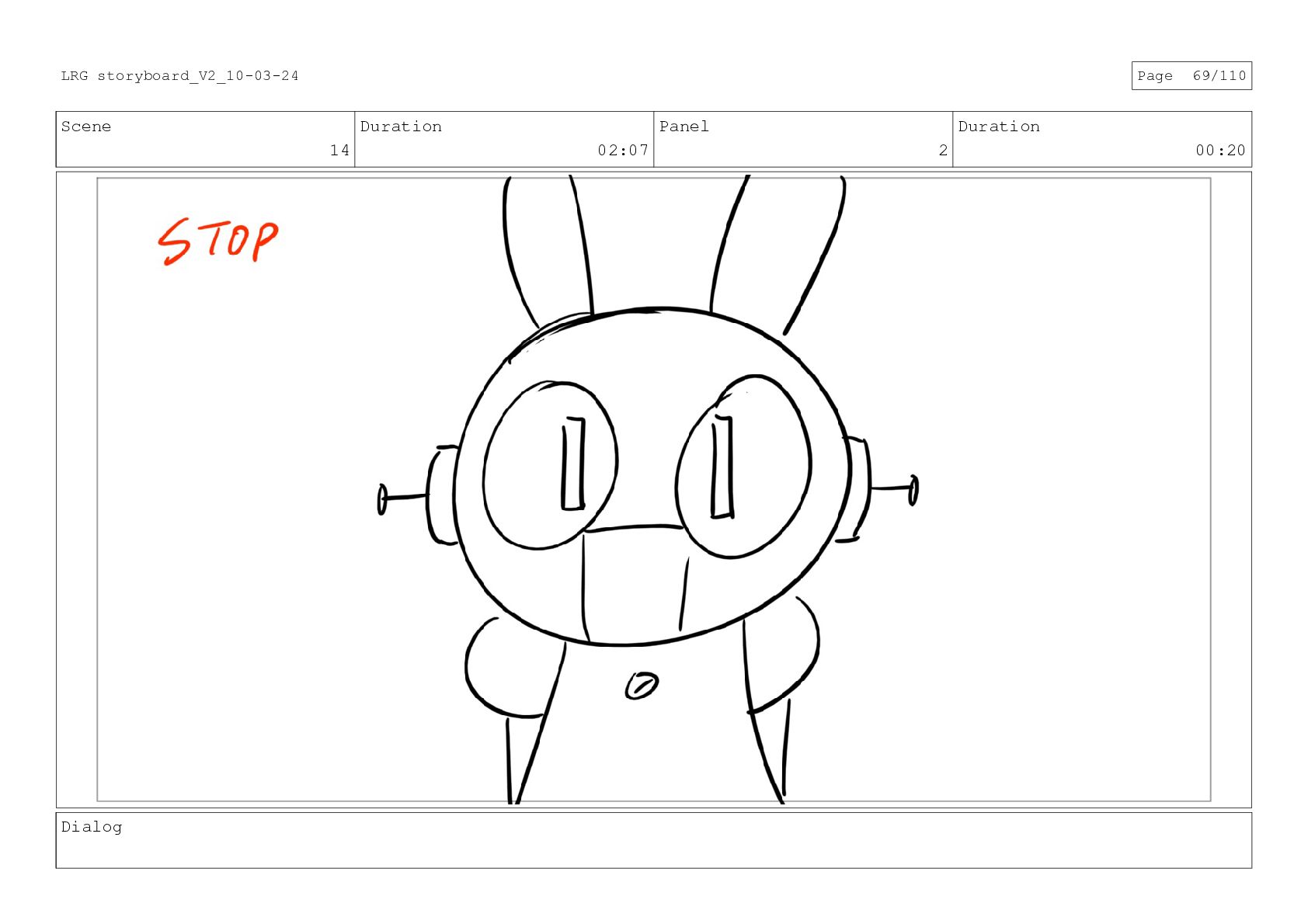 Scene 14 Duration 02:07 Panel 2 Duration 00:20 Dialog LRG