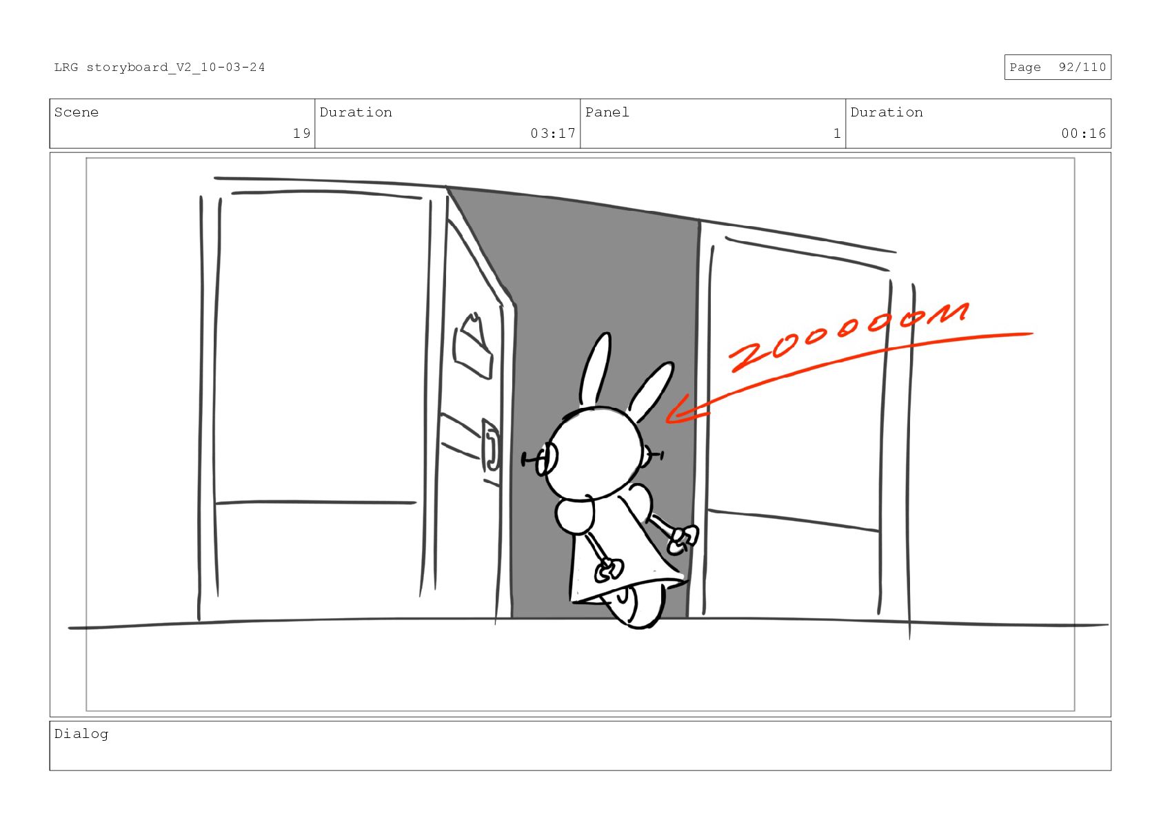 Scene 19 Duration 03:17 Panel 1 Duration 00:16 Dialog LRG