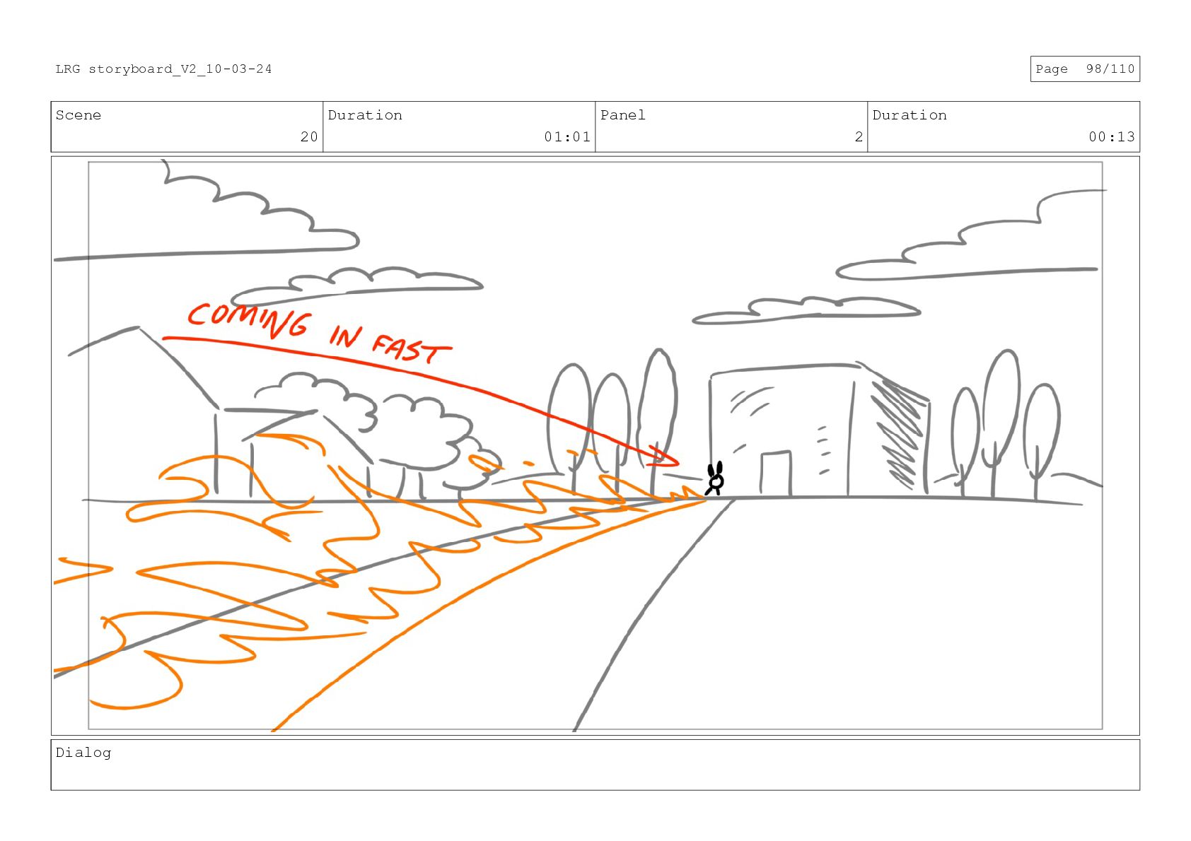 Scene 20 Duration 01:01 Panel 2 Duration 00:13 Dialog LRG