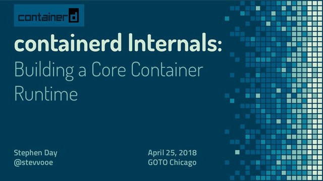 Containerd is the core container runtime used in Docker to execute containers and distribute images. It was designed from the ground up to support the OCI image and runtime specifications. The design of containerd is carefully crafted to fit the use cases of modern container orchestrators like Kubernetes and Swarm. In this talk, we dive into design decisions that help containerd meet a diverse set of requirements for a growing container world. Developing an understanding of the decoupled components will provide attendees a grasp where they can leverage functionality in their platforms. By slicing the components of a container runtime into the right pieces, integrators can choose only what they need.