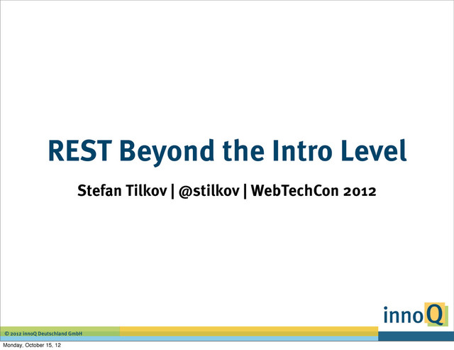 There is probably no developer left who hasn't been exposed to at least one introduction to REST, and most have by now gathered some first-hand experience. In this session, there will be no introduction, only advanced stuff, such as hypermedia aspects, security, format/resource/representation design, and implementation issues - with room for lots of questions (and hopefully, answers).