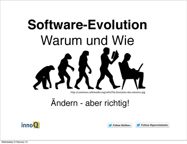 n den Systemen, die uns die technisch die meisten Probleme machen, steckt oft der größte Wert. Wir würden sie am liebsten komplett neu entwickeln, aber das stellt sich bei näherem Hinsehen als äußerst schwierig heraus. Also vielleicht doch behalten? Oder heftig modernisieren? In diesem Vortrag erhalten Sie einen Überblick, worauf es bei Evolution von Software ankommt: Wir müssen auf geänderte Anforderungen reagieren, mit neuen und veränderten Schnittstellen zurecht kommen, unsere Basistechnologien austauschen können und ganz nebenbei noch auf Wartungskosten achten. Dazu beschreiben wir taktische und strategische Maßnahmen, die nicht nur zu der jeweiligen Entscheidung passen, sondern auch eine realistische Chance haben, in die Praxis umgesetzt zu werden.