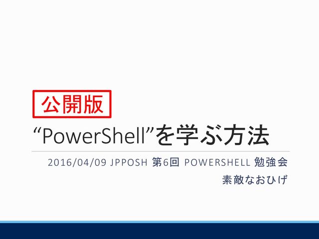 “PowerShell”を学ぶ方法 2016/04/09 JPPOSH 第6回 POWERSHELL 勉強会 素敵なおひげ 公開版