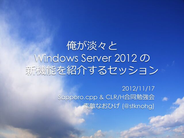 無制限 Standard 全機能使⽤用可能 プロセッサ CAL 仮想インスタンス 2つまで Essentials 制限あり サーバ (25ユーザまで) 2プロセッサまで Foundation 制限あり サーバ (15ユーザまで) 1プロセッサのみ OEM販売のみ 11 • ライセンスは4種類に簡素化 • DatacenterとStandardの違いは仮想インスタンス数のみ • Windows Home Server や Small Business Serverは Essentialsへ