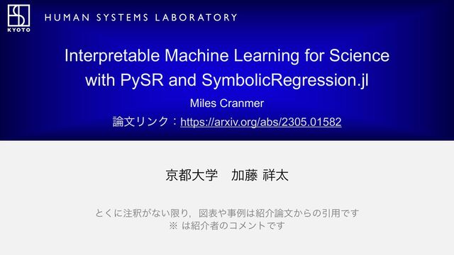 l ֦ுੑ͕ߴ͘ɼࣗ࡞ͷԋࢉࢠଛࣦؔΛ؆୯ʹಋೖͰ͖Δɽ l 4ZN1Zɼ1Z5PSDIɼ+"9ͱͷ࿈ܞ͕༰қͰɼଞπʔϧͱͷ Έ߹Θͤॊೈɽ $PMBCσϞϦϯΫ IUUQTDPMBCSFTFBSDIHPPHMFDPNHJUIVC.JMFT$SBONFS1Z43 CMPCNBTUFSFYBNQMFTQZTS@EFNPJQZOC ·ͱΊʴଞͷSRख๏ͱൺͨಛ 8 PySR Eureqa Compiled X X Multi-core X X Multi-node X ⇥ Scalability GPU-capable ⇥ ⇥ No pre-training X X Denoising X X Feature selection X X Differential equations ⇥ X High-dimensional ⇥ ⇥ Practicality Full Pareto curve X X API X ⇥ SymPy Interface X ⇥ Interfacing Deep Learning export X ⇥ Expressivity score 4 5 Open-source X ⇥ Real Constants X X Custom operators X ⇥ Discontinuous operators X X Custom losses X X Symbolic Constraints X ⇥ Custom complexity X X Extensibility Custom types X ⇥ Citation [self] [11] - Code Expressivity scores: (1a) Pre-trained on equations gener 13