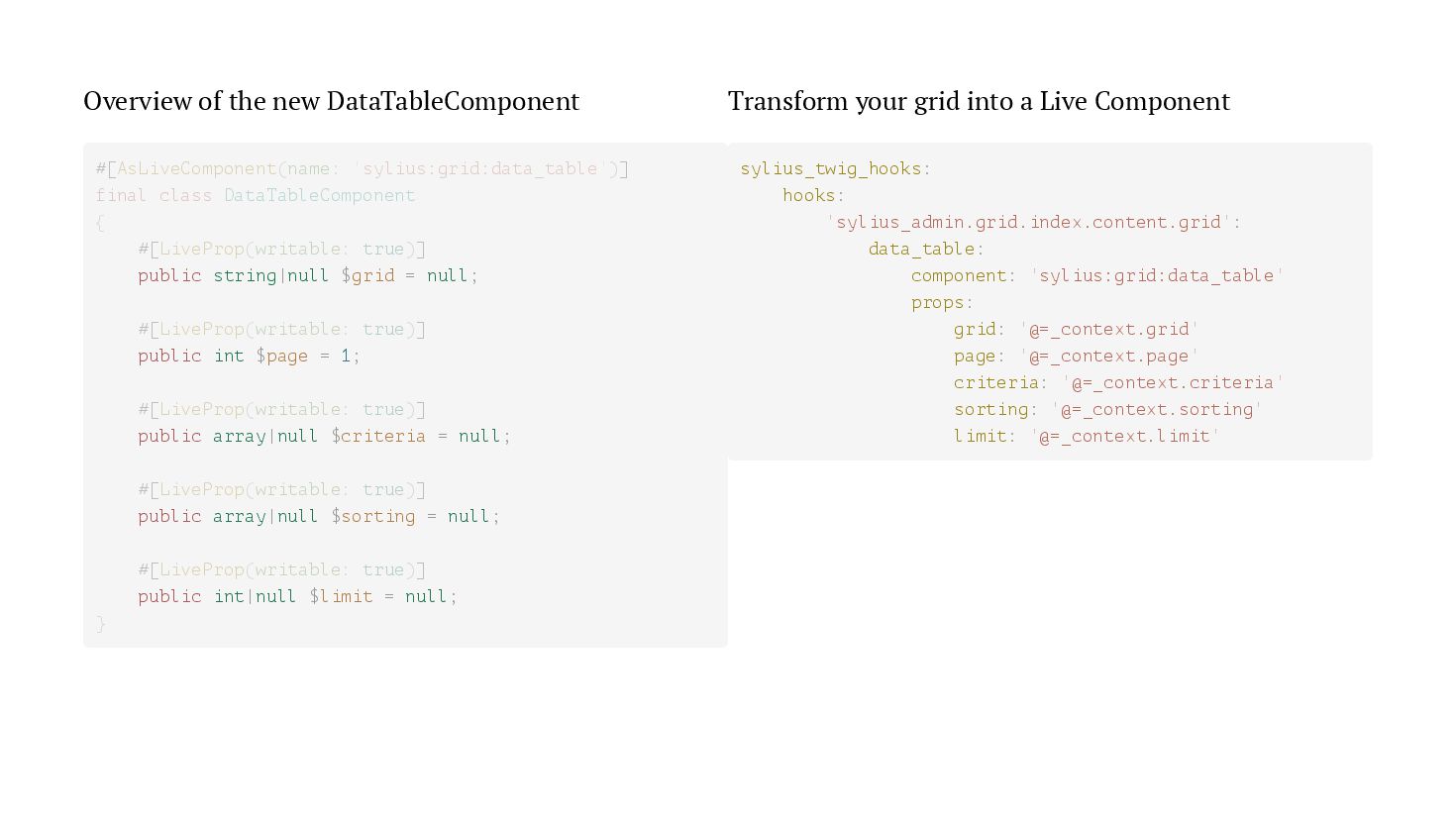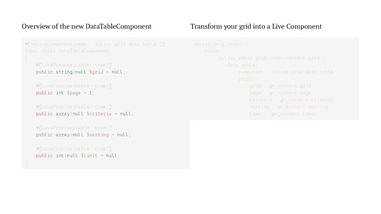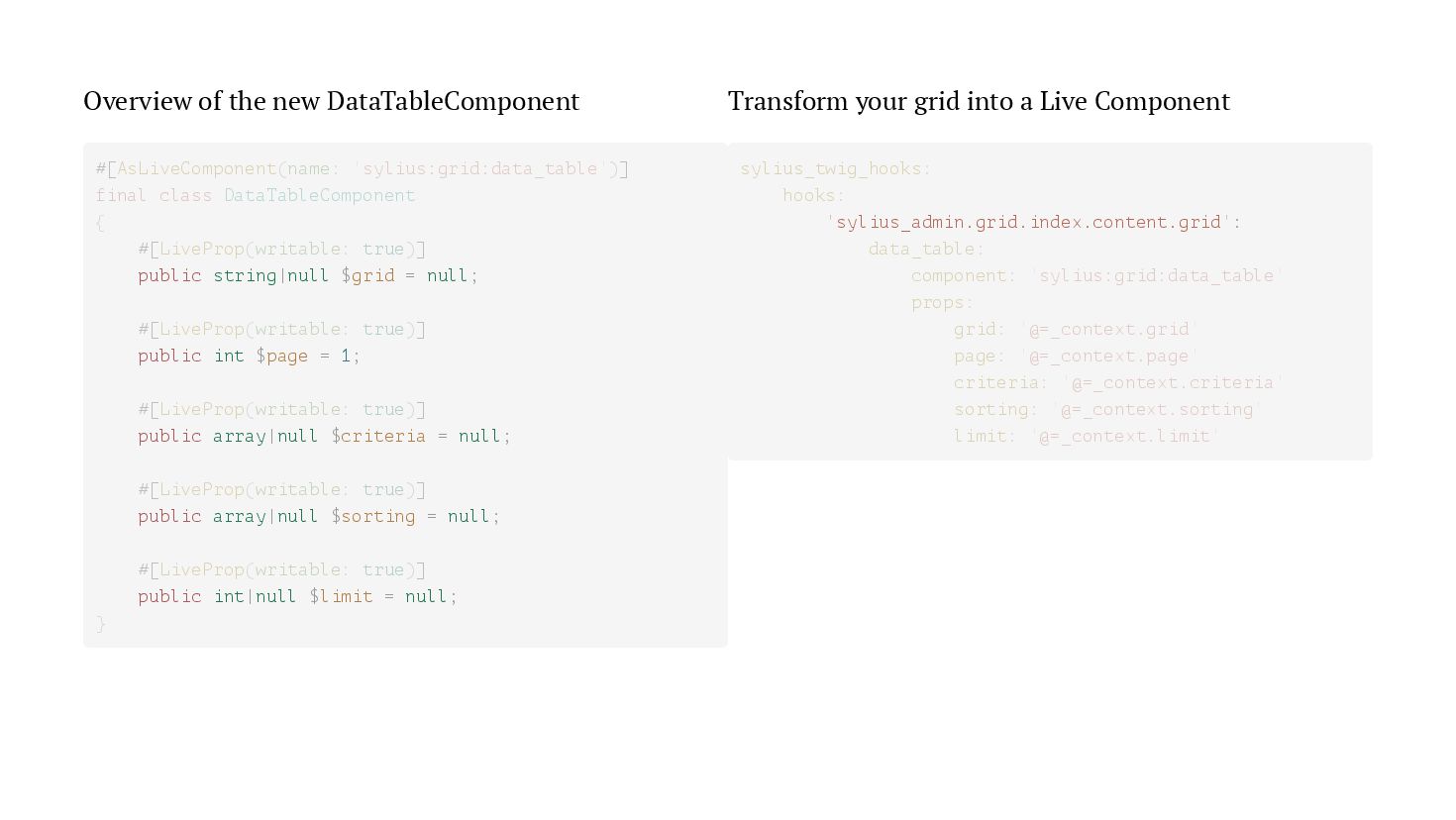 Loïc Frémont and Estelle Gaits will guide you through the Sylius Grid, the powerful, flexible way to display and filter data in any Symfony application. In a deep dive that leaves eCommerce behind, they will show how data providers let you pull records from a database or an external API without altering your presentation layer. You will explore the brand‑new #[AsGrid] and #[AsFilter] PHP attributes that slash boilerplate and improve developer experience, then see a DataTable Component built on Symfony UX LiveComponent deliver reactive grid updates with zero JavaScript. Whether you maintain a complex admin panel or craft custom back‑office tools, you will be ready to harness the full potential of the Sylius Grid.