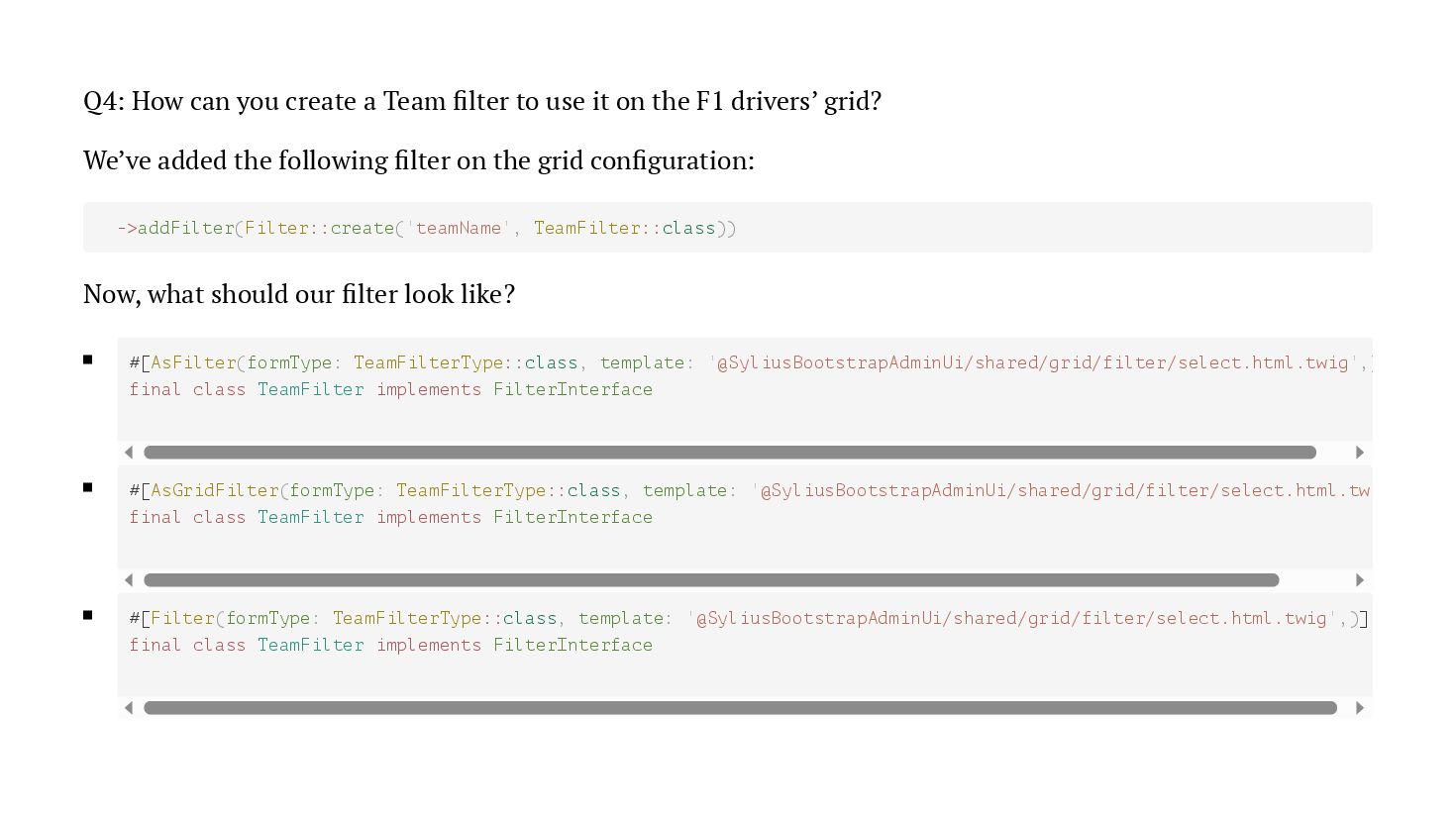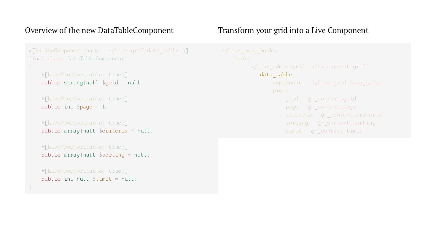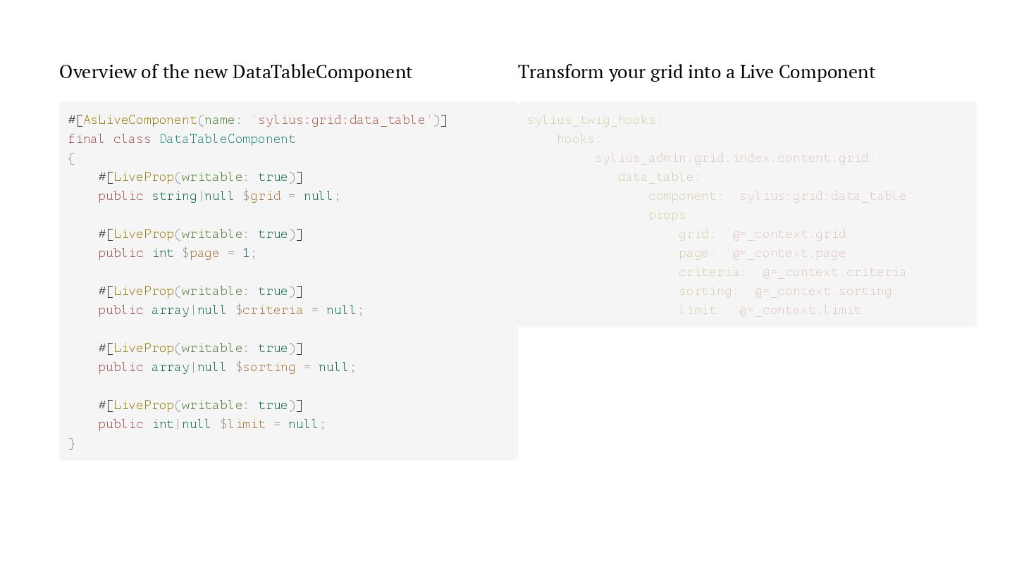Loïc Frémont and Estelle Gaits will guide you through the Sylius Grid, the powerful, flexible way to display and filter data in any Symfony application. In a deep dive that leaves eCommerce behind, they will show how data providers let you pull records from a database or an external API without altering your presentation layer. You will explore the brand‑new #[AsGrid] and #[AsFilter] PHP attributes that slash boilerplate and improve developer experience, then see a DataTable Component built on Symfony UX LiveComponent deliver reactive grid updates with zero JavaScript. Whether you maintain a complex admin panel or craft custom back‑office tools, you will be ready to harness the full potential of the Sylius Grid.