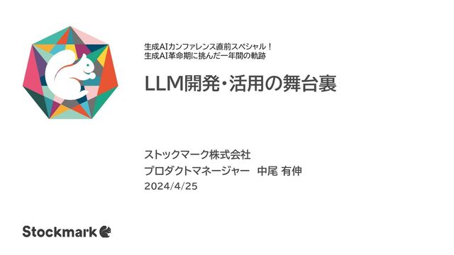 LLM開発・活用の舞台裏@2024.04.25 「【緊急開催】生成AI革命期に挑んだ一年間の軌跡」のLT資料です。 https://generative-ai-conf.connpass.com/event/315163/