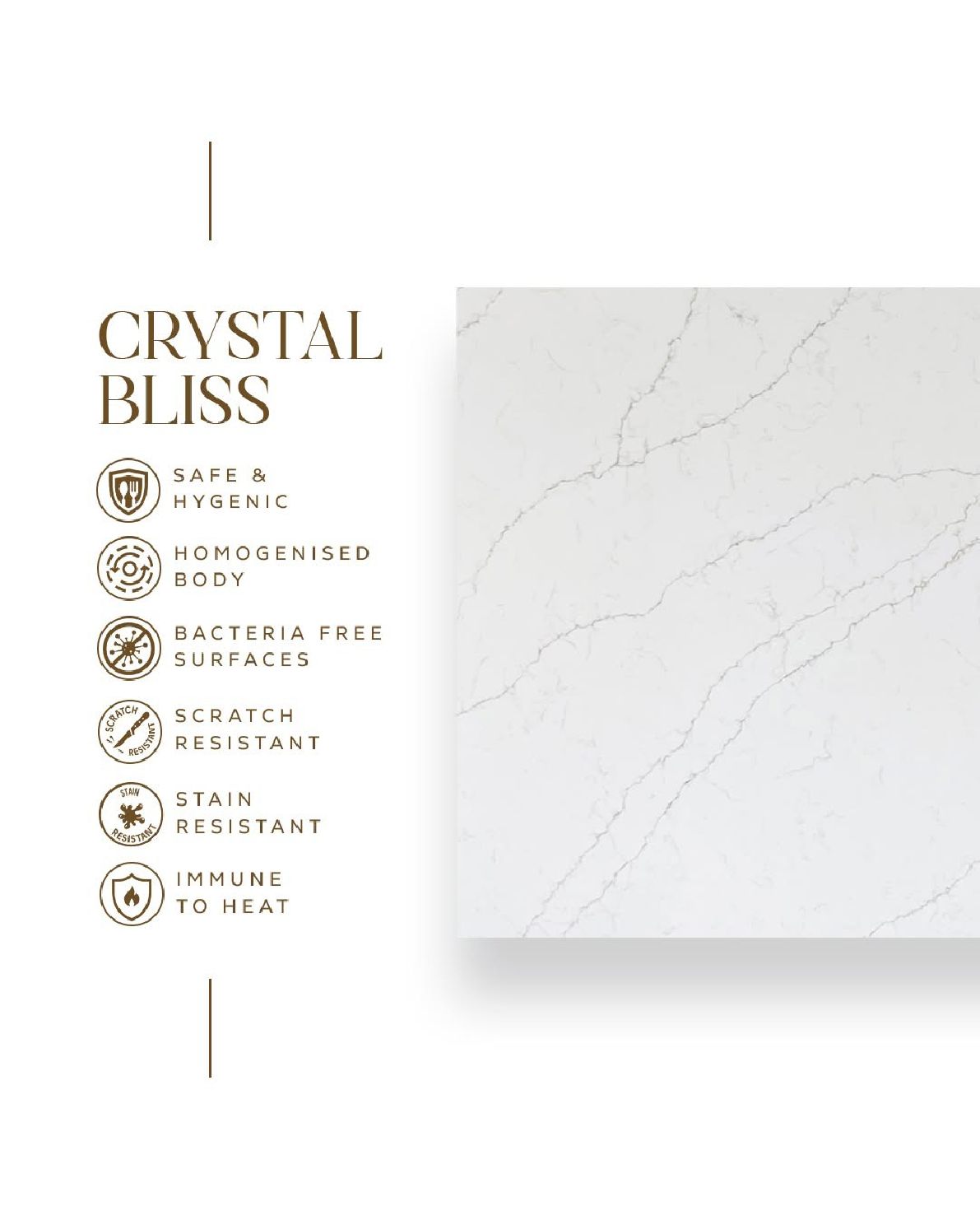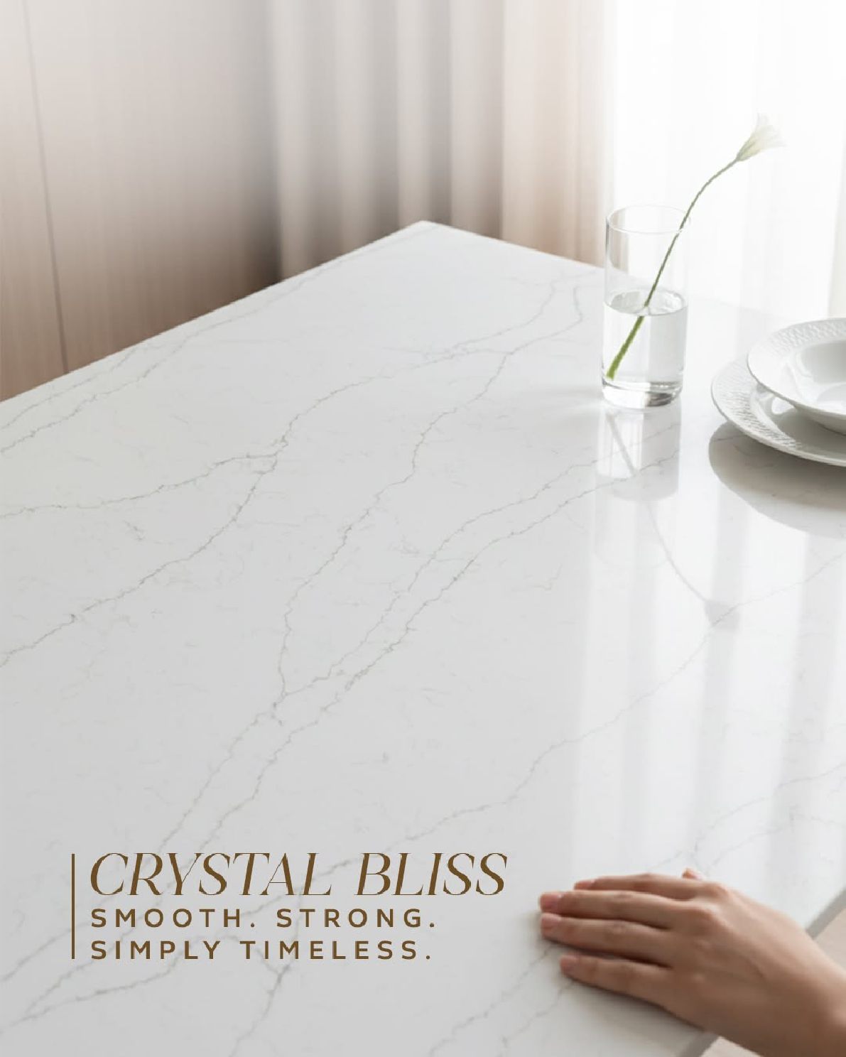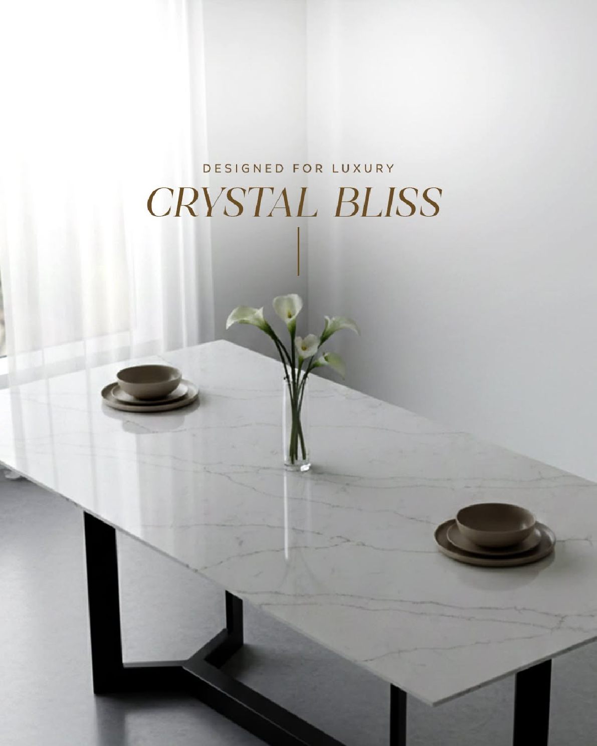 Crystal Bliss Quartz is a premium engineered quartz surface designed for elegant and durable interiors. It offers a smooth finish, high strength, and hygienic, stain- and scratch-resistant properties, making it ideal for kitchens and modern living spaces. Visit: https://kalingastone.com/quartz/