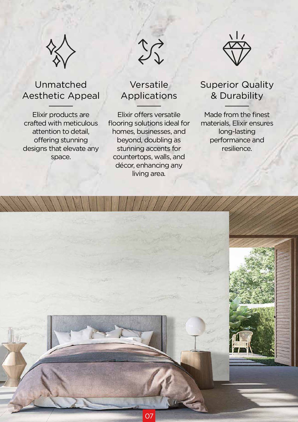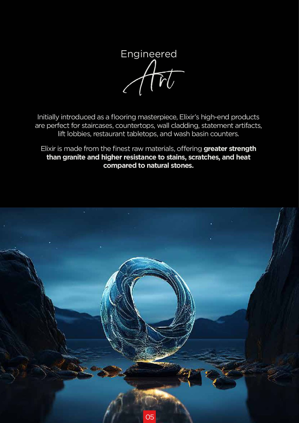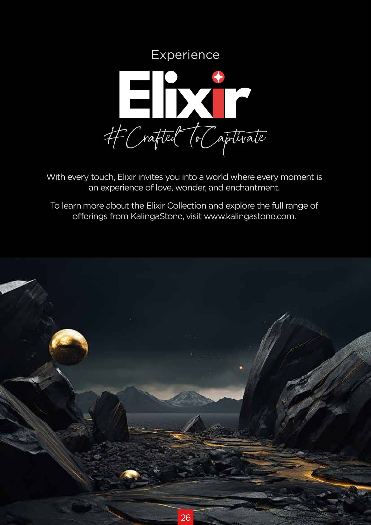 Elixir by KalingaStone is a premium, limited edition quartz surface collection inspired by rare natural stones and crafted through advanced engineering. Developed over five years of research, Elixir blends artistic expression with superior durability, offering distinctive surfaces for luxury interiors, countertops, flooring, wall cladding, and statement spaces.