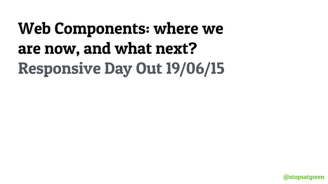 @stopsatgreen Web Components: where we are now, and what next?