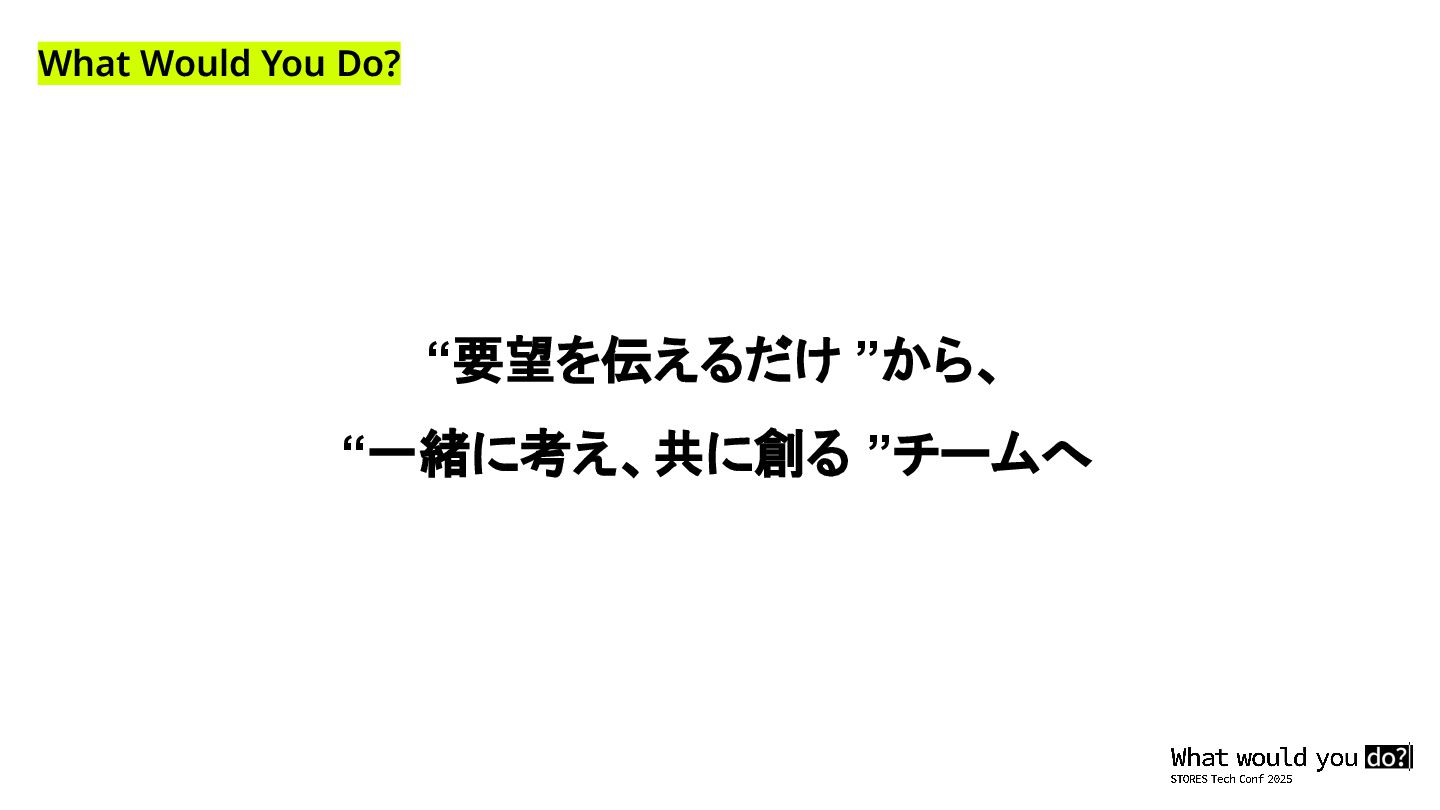 “要望を伝えるだけ ”から、 “一緒に考え、共に創る ”チームへ What Would You Do?
