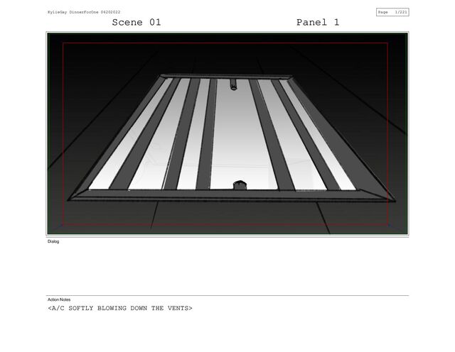 Scene 01 Panel 1 Dialog Action Notes <A/C SOFTLY BLOWING