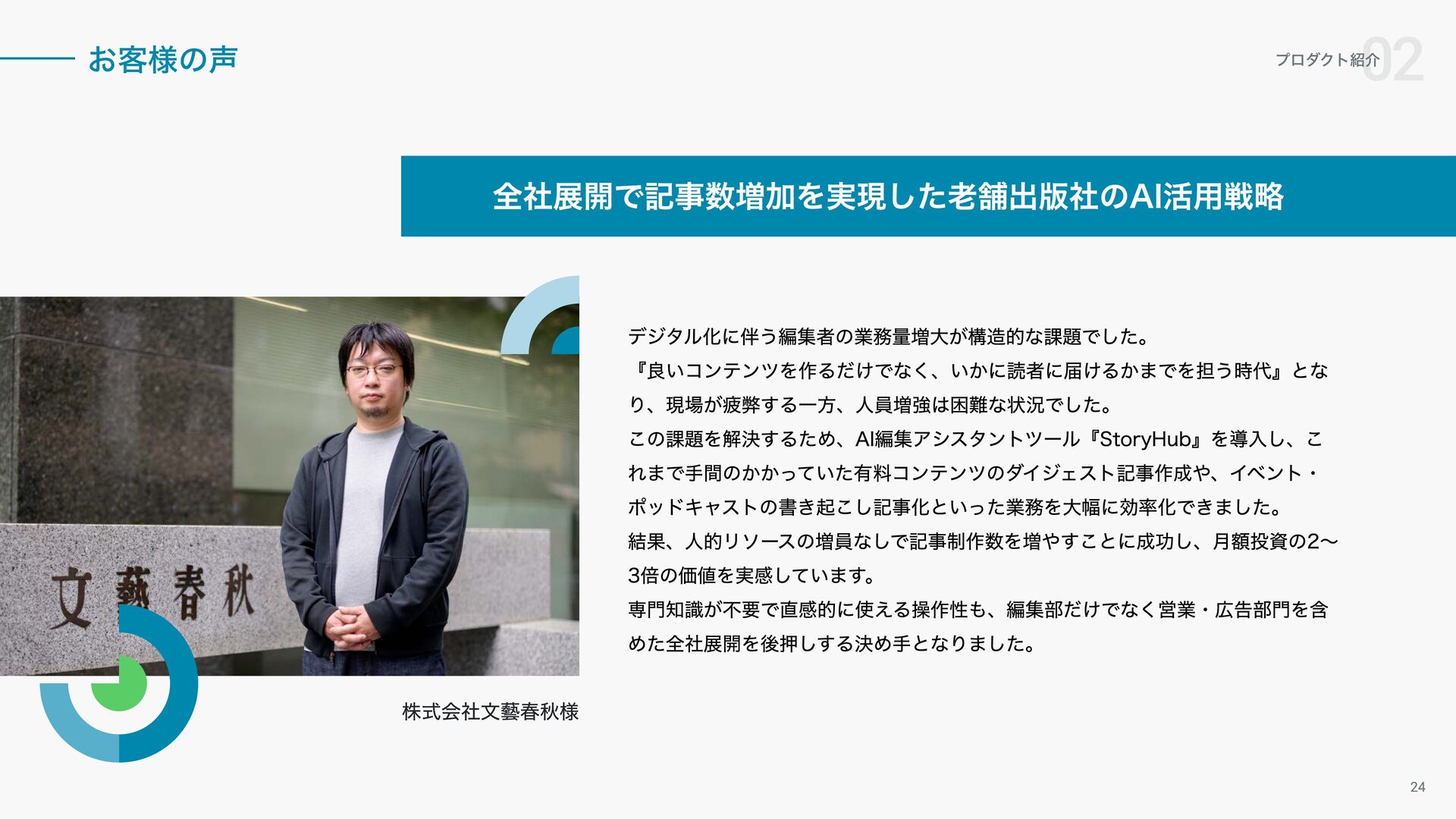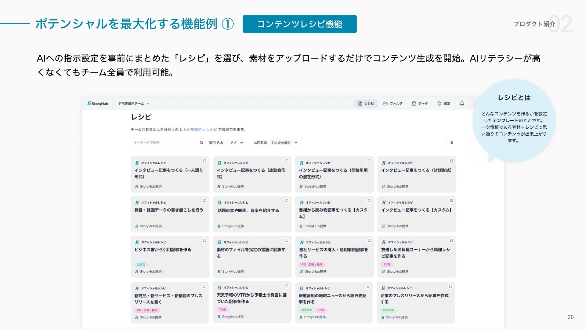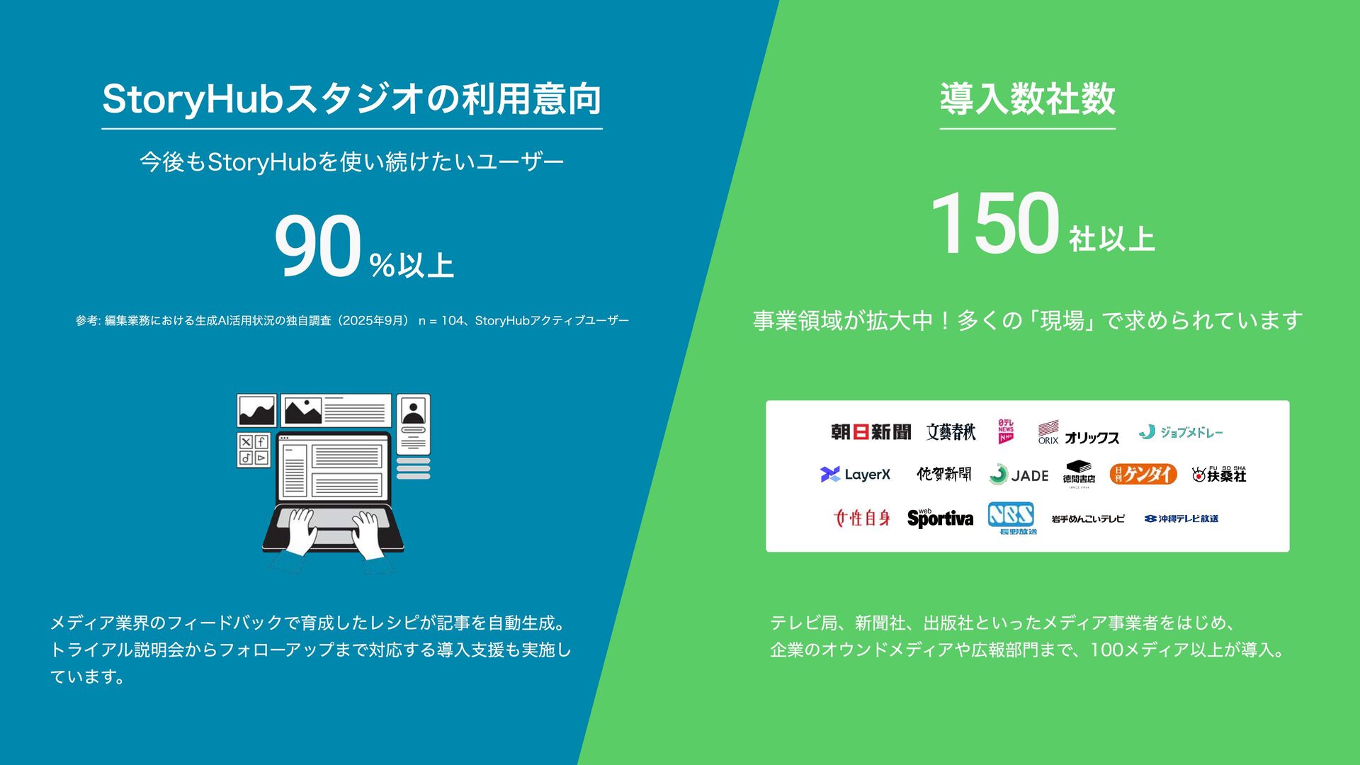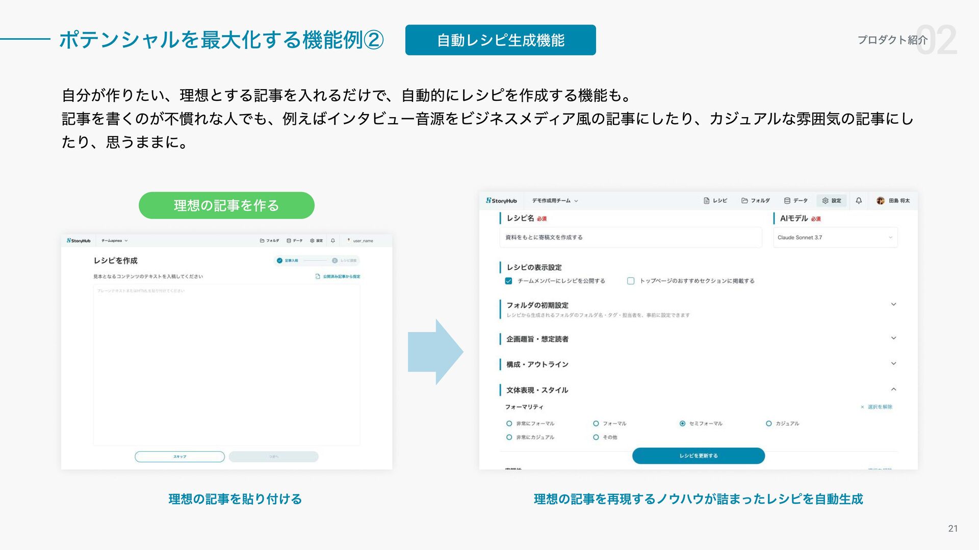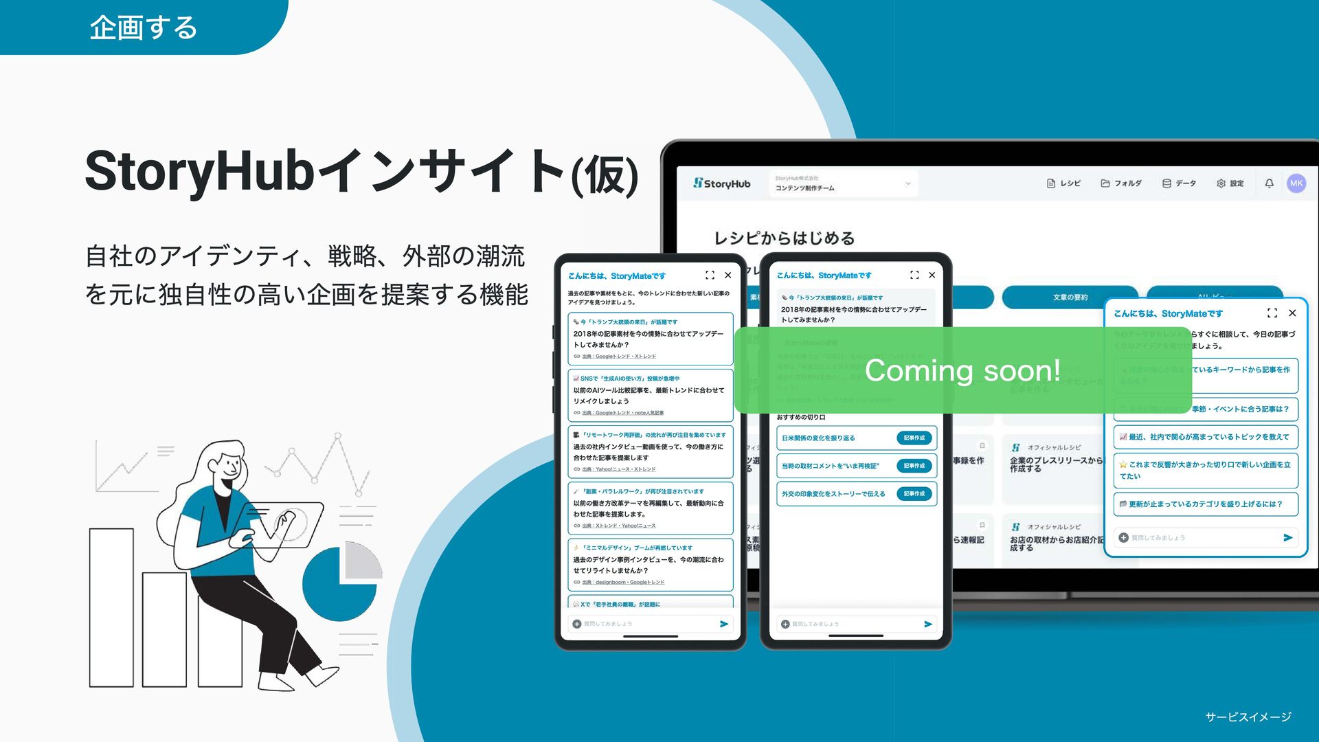 れるアプリ 開発中 MK こんにちは、StoryMateです 今のテーマやトレンドからすぐに相談して、今日の記事づ くりのアイデアを見つけましょう。 🔍 読者の関心が高まっているキーワードから記事を作 るなら? 🗓️ 来月公開に向けて、季節・イベントに合う記事は? 📈 最近、社内で関心が高まっているトピックを教えて ⭐️ これまで反響が大きかった切り口で新しい企画を立 てたい 📂 更新が止まっているカテゴリを盛り上げるには? 質問してみましょう StoryHub インサイト(仮) こんにちは、StoryMateです 過去の記事や素材をもとに、今のトレンドに合わせた新しい記事の アイデアを見つけましょう。 🗞️ 今「トランプ大統領の来日」が話題です 2018年の記事素材を今の情勢に合わせてアップデー トしてみませんか? 📈 SNSで「生成AIの使い方」投稿が急増中 以前のAIツール比較記事を、最新トレンドに合わせて リメイクしましょう 出典:Googleトレンド・Xトレンド 自社のアイデンティ、戦略、外部 の潮流を元に独自性の高い企画を 提案する機能 MK 出典:Googleトレンド・note人気記事 🎥 「リモートワーク再評価」の流れが再び注目を集めています 過去の社内インタビュー動画を使って、今の働き方に 合わせた記事を提案します 出典:Yahoo!ニュース・Xトレンド 🪄 「副業・パラレルワーク」が再び注目されています 以前の働き方改革テーマを再編集して、最新動向に合 わせた記事を提案します。 出典:Xトレンド・Yahoo!ニュース ⚡ 「ミニマルデザイン」ブームが再燃しています 過去のデザイン事例インタビューを、今の潮流に合わ せてリライトしませんか? 出典:designboom・Googleトレンド 💬 Xで「若手社員の離職」が話題に 出典:Xトレンド・ ニュース こんにちは、StoryMateです MK 🗞️ 今「トランプ大統領の来日」が話題です 2018年の記事素材を今の情勢に合わせてアップデー トしてみませんか? 💡 StoryMateの提案 当時の記事では「初来日」を中心に報じていましたが、 現在は「再来日による外交再評価」が注目されています。 過去の取材素材を活かし、両者を対比する記事にしてみま しょう。 当時の記事:トランプ大統領ついに日本の地へ おすすめの切り口 日米関係の変化を振り返る 記事作成 当時の取材コメントを“いま再検証” 記事作成 外交 の 印象 変化を ス トーリーで 伝 える 記事作成 質問してみましょう 以前の 人 材成 記事を“ の働き方”にを 当て て再 成してみませんか? 質問してみましょう 正式版 StoryHub スタジオ ストーリーがもつ可能性を最大化、 リスクを最小化するAI編集SaaS 特許取得 150社導入 MK 開発中 StoryHub フィード 自社の文脈・目的にあったコンテ ンツを高精度パーソナライズで配 信できるソリューション SHIBUYA NEXT — 100年先 を創る、 街 と 人 の物語 変わ り 続ける渋谷の 街。 私た ちは 単に建物 を建 て るので は な く 、 そこ に集 う人 々の 営 みや文化をデザインし て います 。 再開発 ... らしさを愉しむ、住まいと暮ら しの最適解 多様化する 「 豊 か さ 」 の定義 。 都市での洗 練された暮 ら し から 、自然豊 か な環境での 二拠点 生 活まで、自分 ら し く生 きる 人 々 ... 「過 ご す時 間 」をリデザインす る 忙しない日常を離れ、心身を解き放つ 場 所。 私た ち が手がけるリゾート 施設 や ウ ェ ルネス事 業 を通じ て 、 「 何もしない贅沢 ... 裏渋・奥渋・ 街 歩き — あの路 地の、あのお 店 に会いに 再開発で進化する渋谷のすぐ傍 ら に、 店 主 の こ だわ り が光る小さな名 店 があ り ます 。 東急不動産が 街 の一部 と し て 共にある か... 施設 と 街 、 緑 が 交差 する、心地 よ い日 常 商業施設 の 中 にある最 先端 のショ ッ プ と 、 そ の 周辺 に 根付く地域密着 の 個人店。そ の 両方 がある から 、 街は もっ と楽 し く なる ... 街 を 彩 る、今話題の 店主 たちの こ だ わり な ぜこ の 場所 で、 こ の 店 を 始 めたの か。街 の 風景 を 作 っ て いるの は 、 そこ で 商 いを 営 む人 た ち の情 熱 です 。お気 に 入り の カフ... 「 好 き」を 深 める、大 人 の 休 日 の過 ご し方 サウ ナで 整う 、 旬 の 食材 で 料理 を 愉 し む 、 趣味 の 道具 を メ ンテナンスする 。そん な 「没頭 する 時間」こそ が 人生 の質を高め ... Se ns e o f S p a c e — 空間 を 整 え、 感性 を 満 たすインテリア お気 に 入り の家 具 、光の 入り方 、一輪の 花 。 住まい は 、あなたの 生 き 方 を映し出す 鏡です 。 住宅 設 計で培ったノ ウ ハ ウと 、 ... 街 と を、最高のー ルド に。 事 の 間 の、の ル フ やト ッ ン 。 身 を動 か す ことは 、心を自に する こと。 都市でのークア ウ ト から... で、 と暮らす。 緑 ある 街 の作り方 ラン ダの一 から 、 街 をる 道 ま で 。 物 は 私た ち の暮 ら しに、目にな い豊 か さを てく れます 。 都市 化に ... ルビ ーイン — 「 好 き」を 深 める、大 人 の 休 日。 サウ ナで 整う 、 旬 の 食材 で 料理 を 愉 し む 、 趣味 の 道具 を メ ンテナンスする 。そ