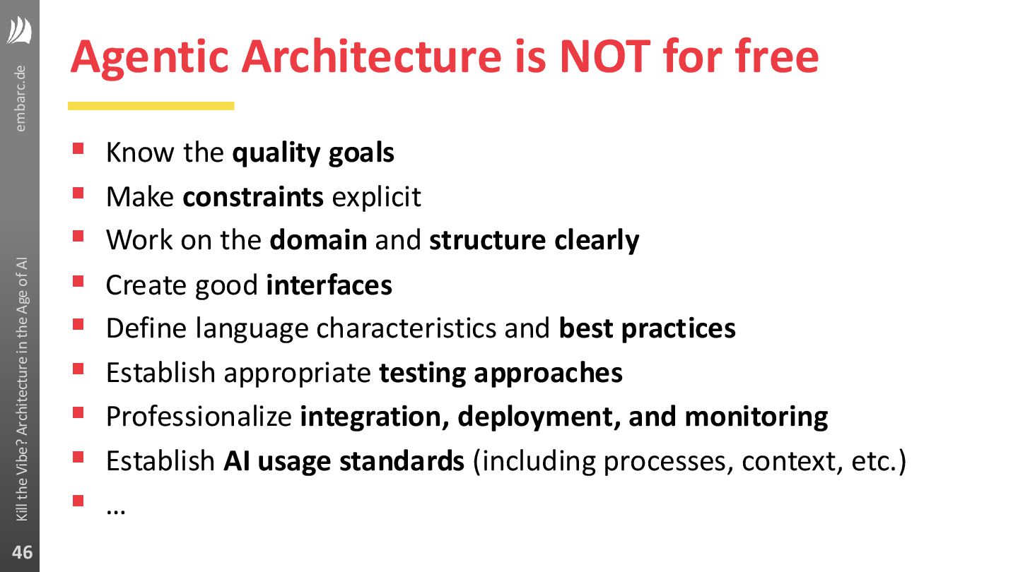 In this talk, I’ll dive into how LLMs are reshaping architectural practices and how solid architectural principles can help you make sense of AI-generated code. Using concrete tools like AI review agents, LLM coding workflows, and custom analysis agents, I’ll demonstrate how AI-supported projects can maintain quality and speed. I’ll also discuss proven architectural methods that hold up in AI environments, including lightweight reviews, AI-supported reflection, and set-based design.