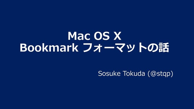 ⾃⼰紹介 • Sosuke Tokuda (@stqp) • インフラ/アプリやってます。 今⽇はMacOSXのBookmarkデータ構造を紹介します。