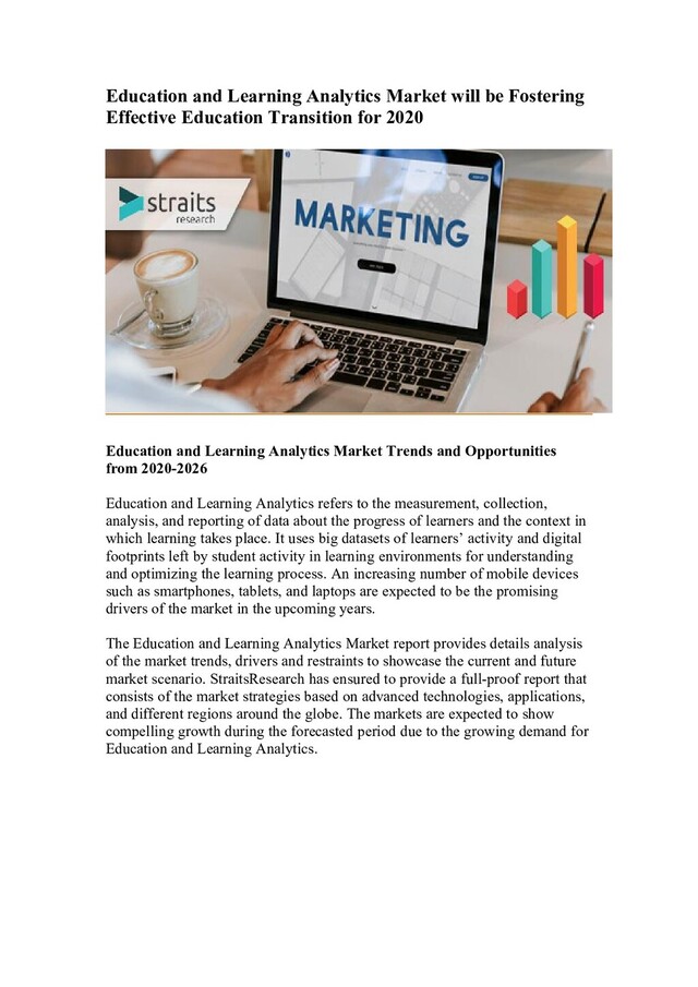 Analytics market report provides an all-encompassing perspective related to the regional market and comprehends the different components engaged with the purchasing choices. The report analysis different research projects, significant information which helps the client to settle on learning choices. The report incorporates segmentation that helps in understanding developing deals with new logical reasoning, new aptitudes, and imaginative projects and instruments. Top Market Key Players: Some of the key market players in the education and learning analytics market are Blackboard Inc. (U.S.), Microsoft (U.S.), IBM Corporation (U.S.), Oracle Corporation (U.S.), Pearson Inc. (U.K), Saba Software Inc. (U.S.), McGraw-Hill Education (U.S.), SAP AG (Germany), and D2L Corporation (Canada), Cornerstone OnDemand (U.S.), Jenzabar (U.S.), Knewton (U.S.), and Kronos (U.S.) Segmentation of Education and Learning Analytics Market: By Tools, Predictive Analytics, Content Analytics, Adaptive Learning Analytics, Others, By Deployment, On-Premise, On Cloud, By Service, Managed Services, Professional Services, By End-User, Academic, Enterprise/Corporate, For More Information @ https://straitsresearch.com/report/Education-and-Learning-An alytics-Market The competitive landscape: The competitive landscape of the Education and Learning Analytics market is a highly crucial section of the report that creates a firm portrait of the market’s key players and their rivalries. A reader can evaluate their position in the market by using this scale of reference, while extensively planning their future movements to counter the movements of the other players in the same areas. This segment provides updated details on company profiles, business strategies, financial statistics, growth rate and the future scenario for the key leading