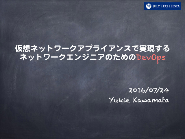 仮想ネットワークアプライアンスで実現する ネットワークエンジニアのためのDevOps 2016/07/24 Yukie Kawamata