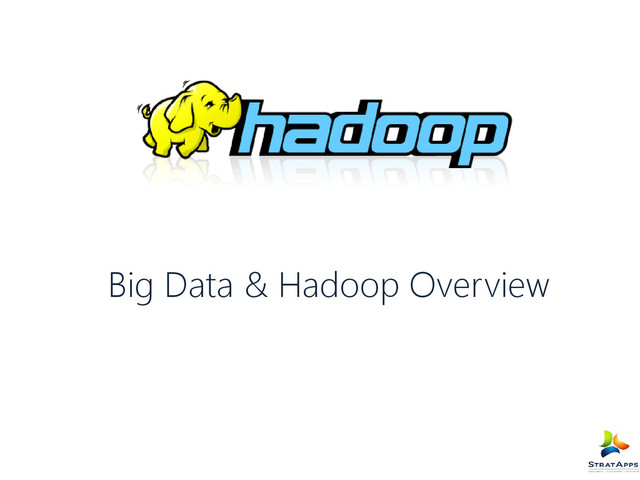 or Petabytes) Systems / Enterprises generate huge amount of data from Terabytes to and even Petabytes of information. Data is every were, we either ignore it or destroy it. Examples Rolling web log data Network logs of data flowing through various networks System logs Click information from website Stock trading data from Stock exchange Examples of personal data Photo Stream, Social media Streams Data need not be in a table in some RDBMS A airline jet collects 10 terabytes of sensor data for every 30 minutes of flying time. NYSE generates about one terabyte of new trade data per day to Perform stock trading analytics to determine trends for optimal trades.
