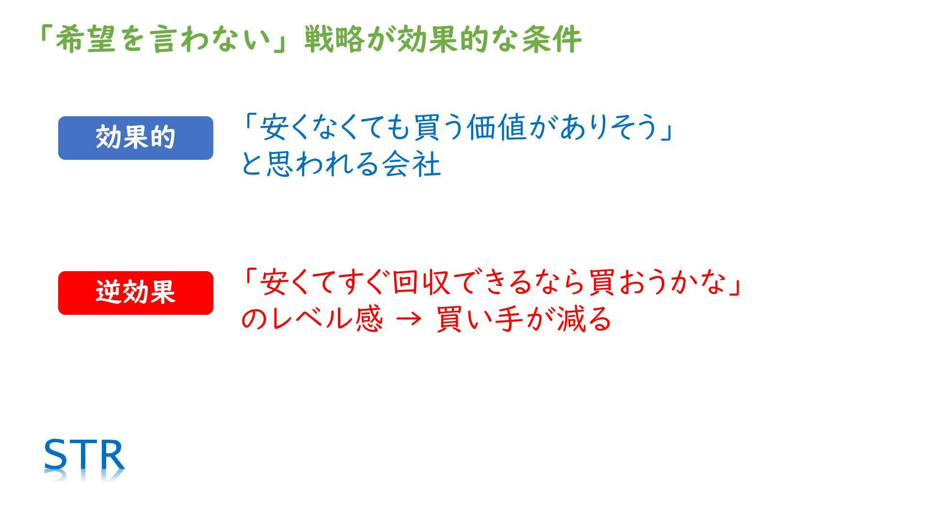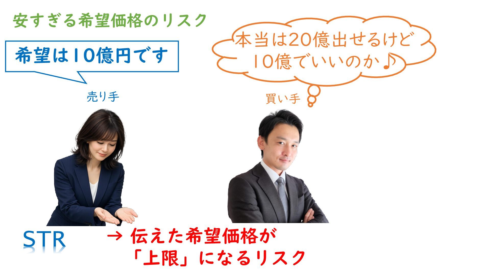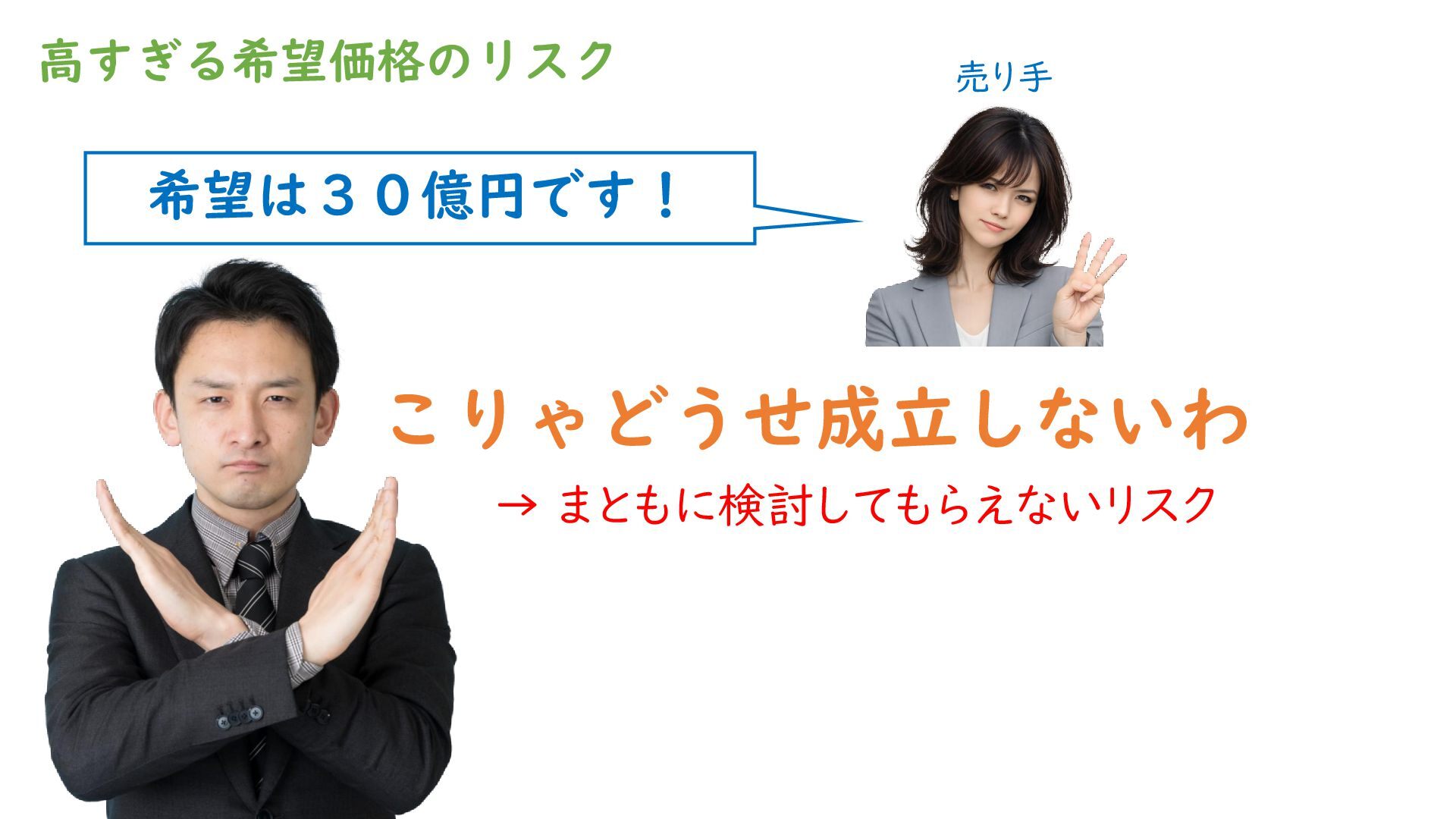 ②希望価格を言わない方法 → 買い手の買収意欲が高い場合には有効だが、予算感が見えず検討されにくいリスクも