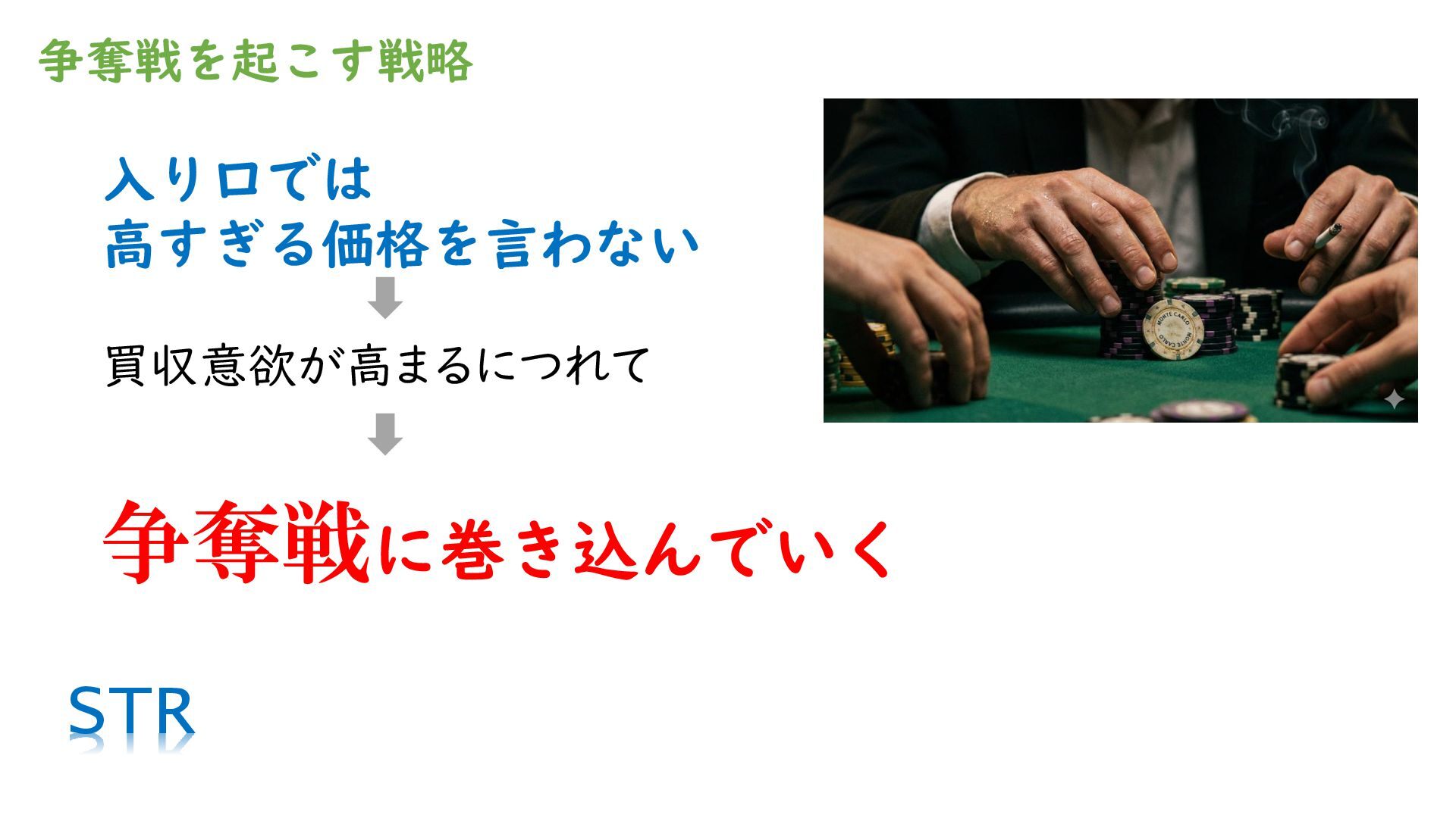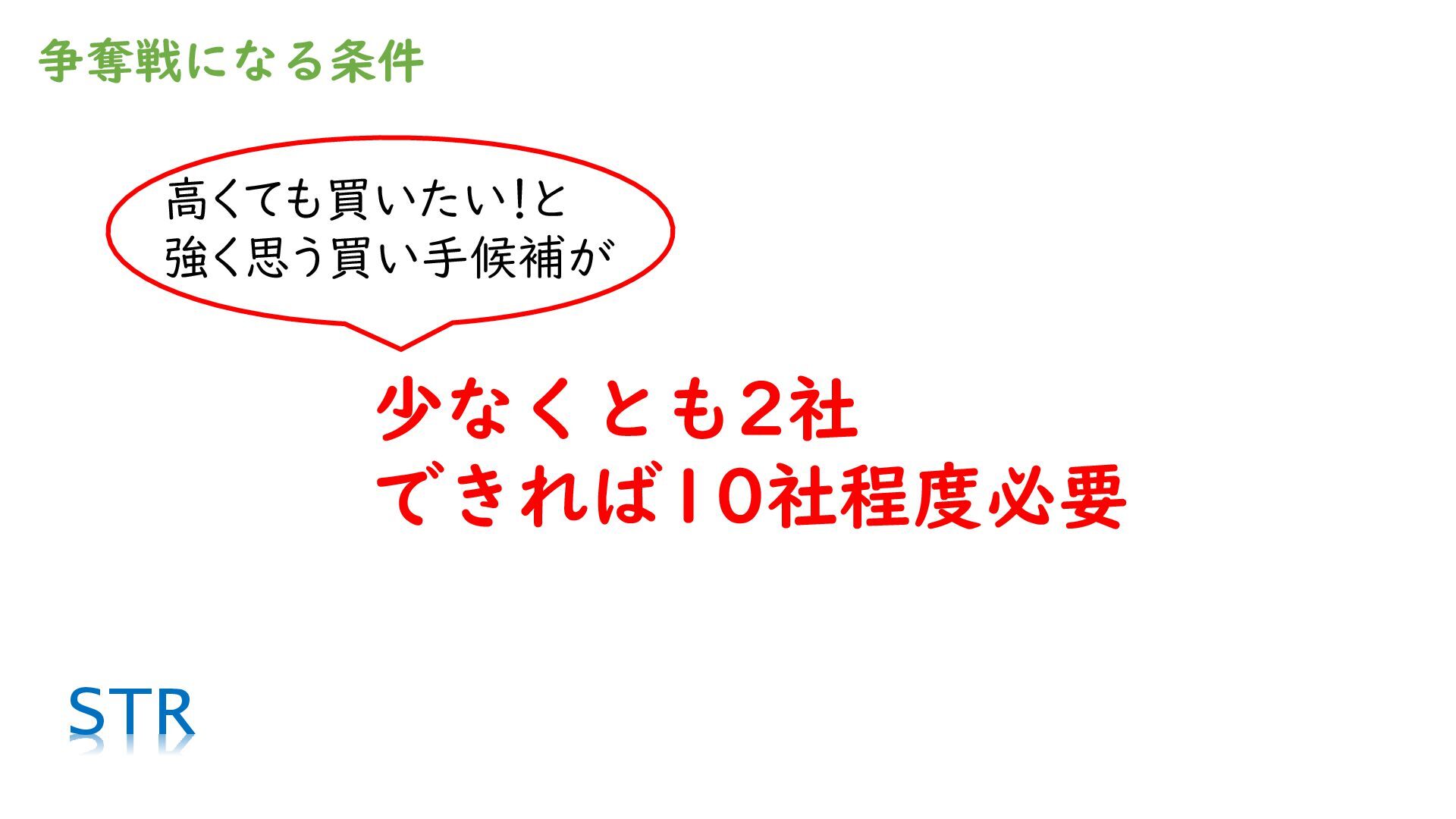 ・高値を引き出す2つの条件:①インフォメーションメモランダム(企業概要書)による徹底した情報開示 ②競争入札による争奪戦の創出