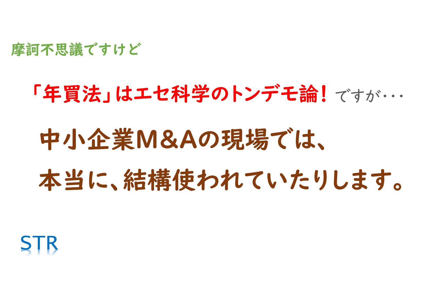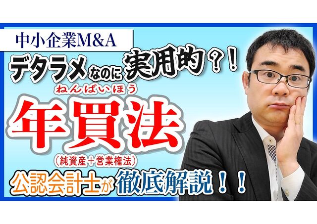 中小企業M&Aでよく目にする「純資産+利益の●年分」という値決め方法、いわゆる年買法(純資産+営業権法)を徹底解説! 理論的にはデタラメな方法ですが、実は実用性もあり幅広く使われています。その理由を公認会計士がわかりやすく解説します(26分41秒)。