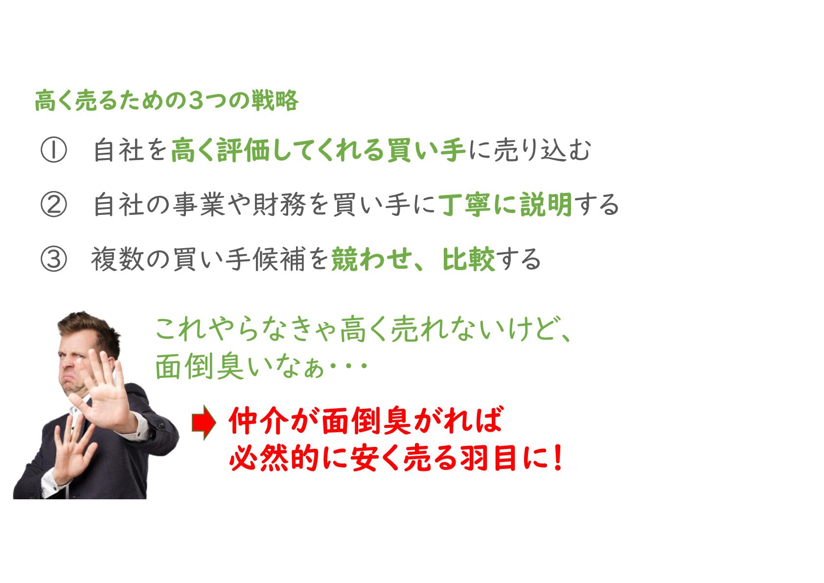 M&A仲介業者を使えば高く売ってもらえると思っている方も多いですが、実態は逆で、安く売ろうとする仲介業者がとても多いです。