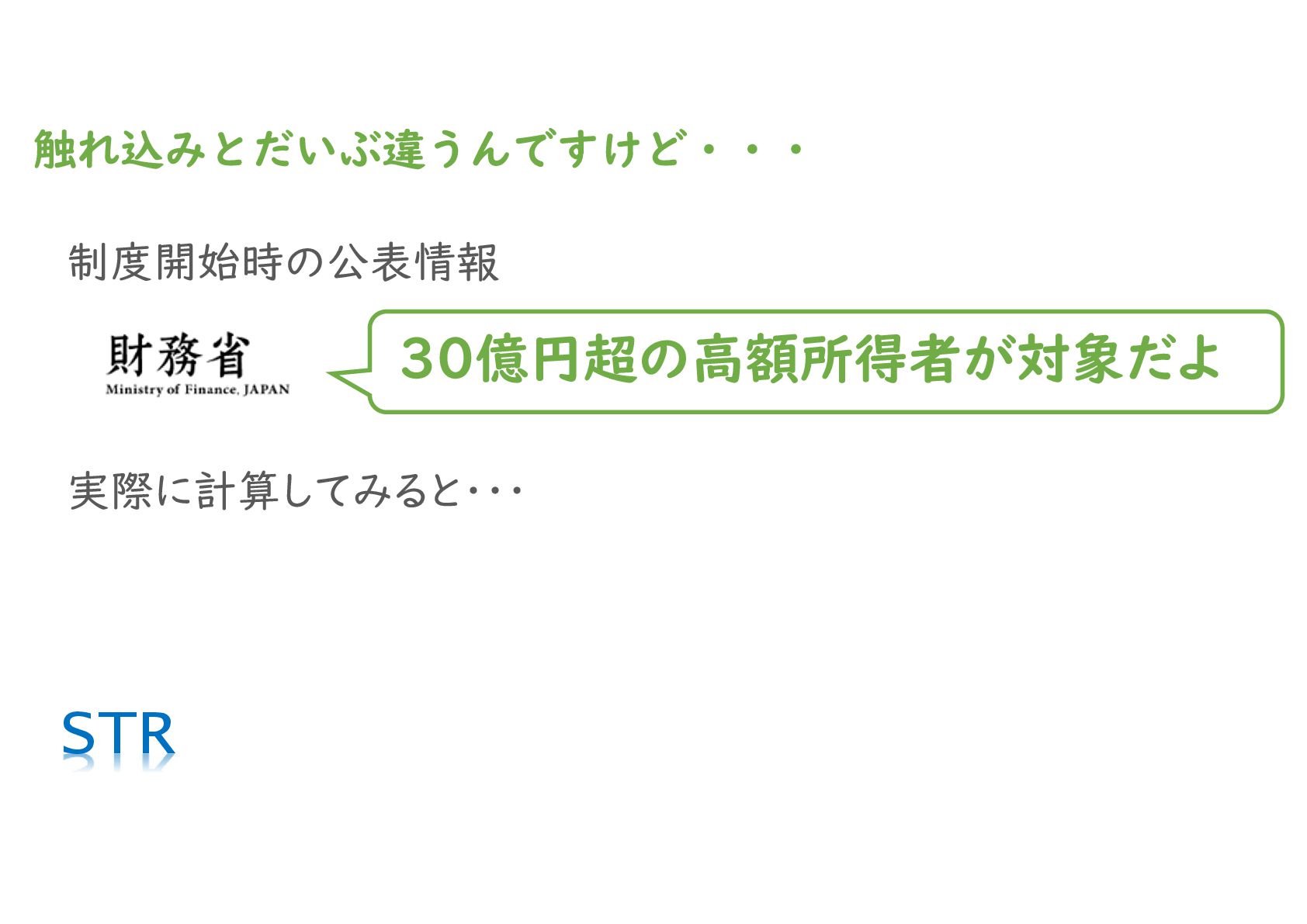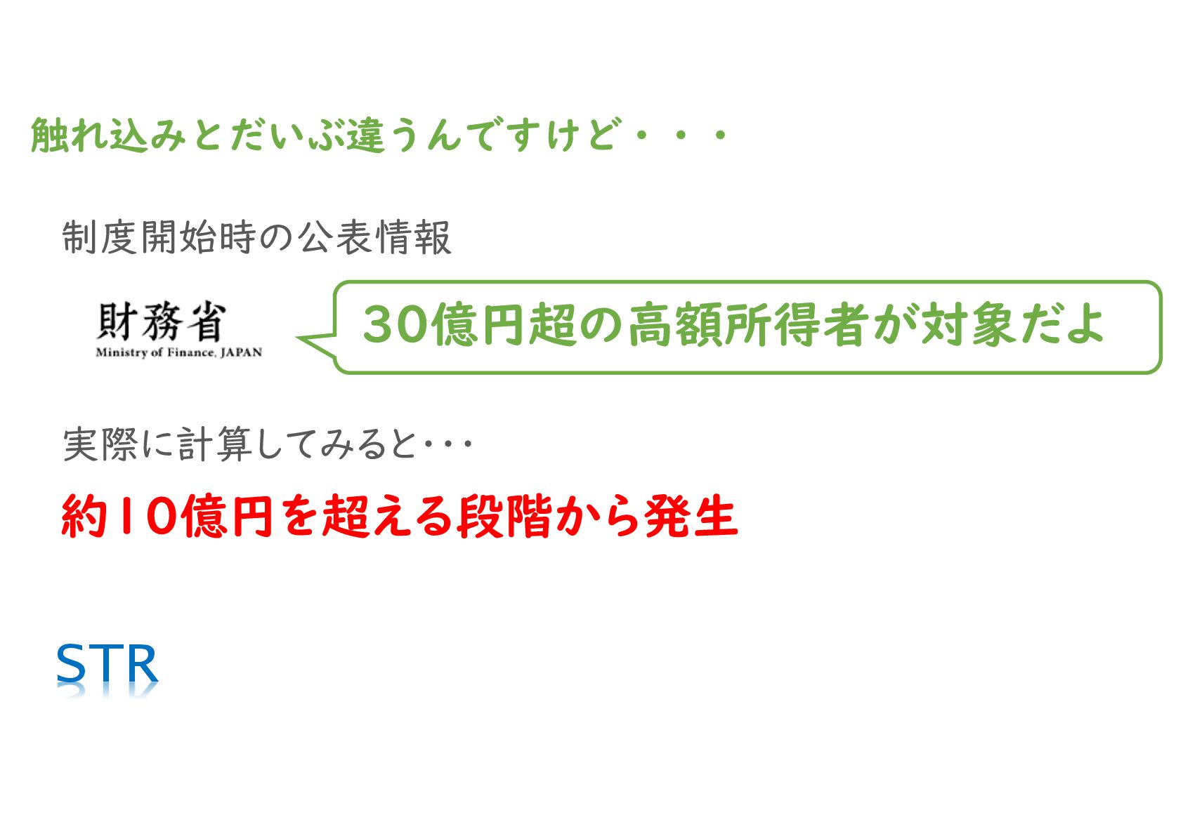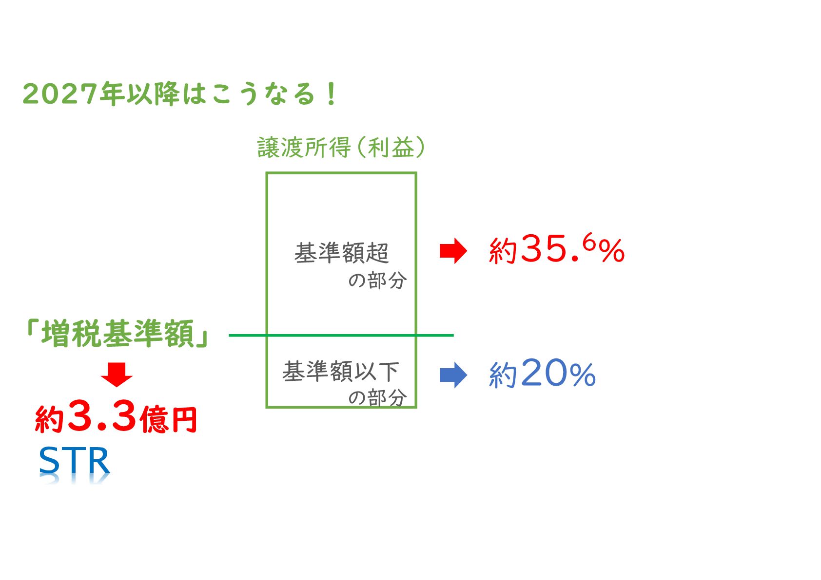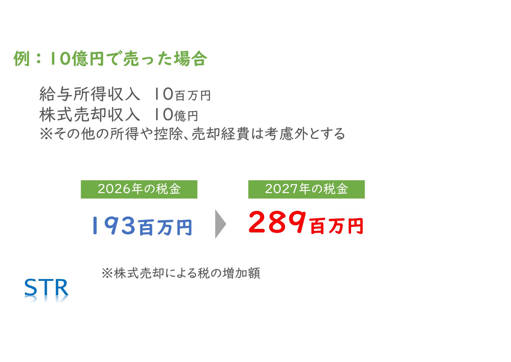 2027年より、高額所得者を対象とした「ミニマム課税(最低税率制度)」が大幅に拡張されます 。これにより、大型案件だけでなく3億円を超えるような中小企業のM&Aでも、税負担が数千万円〜数億円単位で激増する可能性があります 。