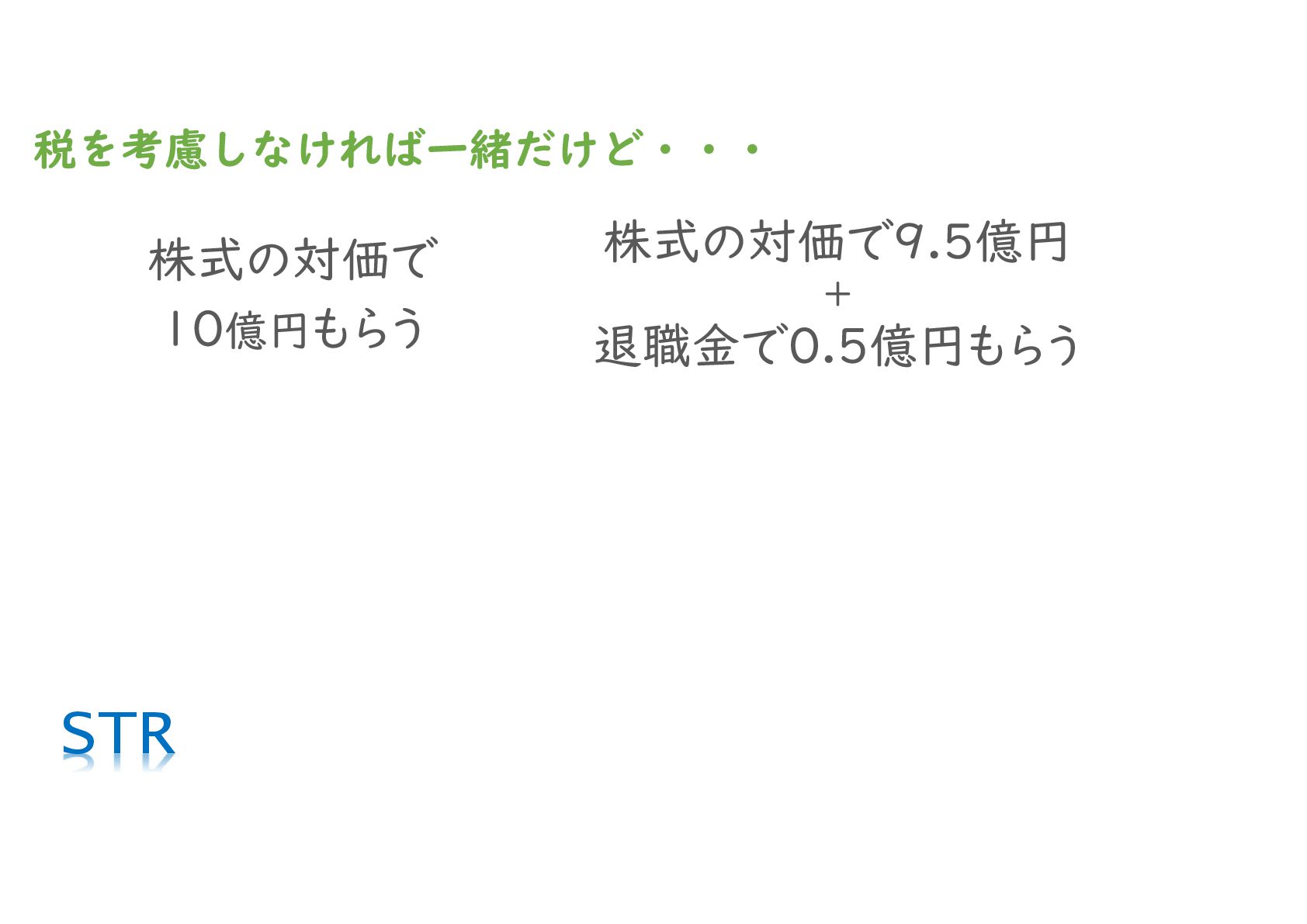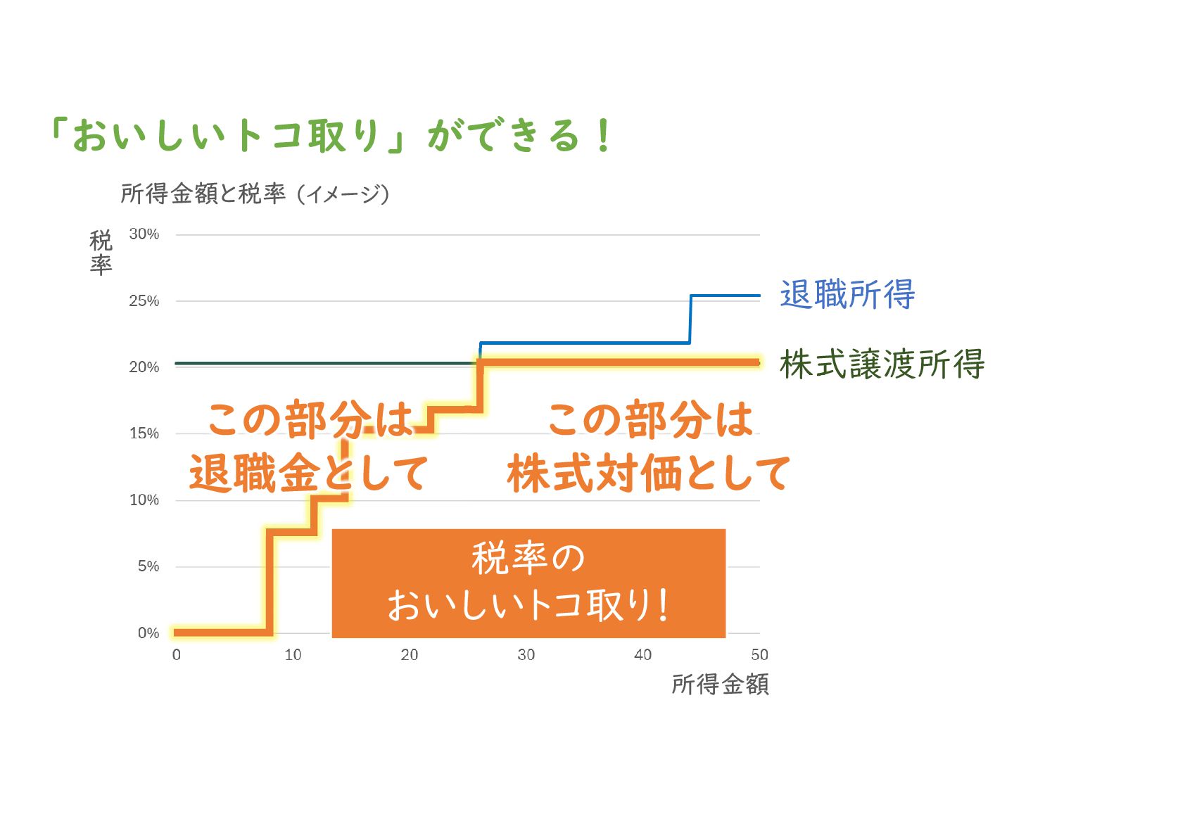 メリット: 株式対価の一部を退職金として受け取ることで、実質税率を抑えられます 。